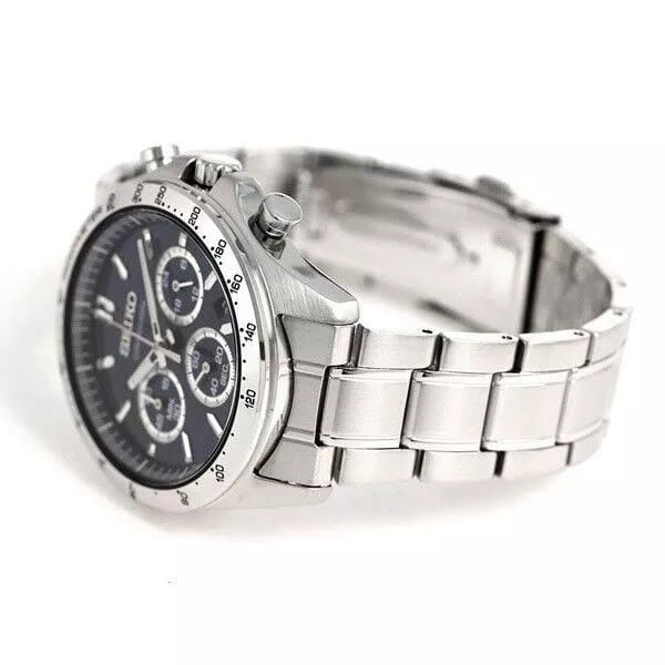 Мужские кварцевые часы Seiko SBTR011 из коллекции Spirit — это сочетание точности, функциональности и современного дизайна. Часы оснащены японским механизмом калибра 8T63 с функцией хронографаХронографФункция позволяет измерять отрезки времени с особой точностью: часы, минуты, секунды. Верным признаком хронографа является наличие на циферблате 3 дополнительных окошек-счётчиков., включающей секундомер с точностью 1/5 секунды и временем измерения до 1 часа, отображаемый центральной стрелкой. Также реализована функция тахиметраТахиметрРазмеченная шкала, располагается на ободке или безеле часов. Тахиметр позволяет рассчитать скорость на определённом участке пути, расстояние измеряется в километрах или милях.. Центральные часовая и минутная стрелки дополнены вынесенной секундной стрелкой на отдельном циферблате, окошко даты расположено между отметками 4 и 5 часов. Циферблат синего цвета оформлен штриховыми метками, стрелки и метки покрыты люминесцентным покрытиемЛюминесцентное покрытиеПозволяет считывать показания времени в темноте. Производители наносят на стрелки, часовые индексы, безель или поверхность циферблата светонакопительный состав, дающий холодное свечение. LumiBrite, обеспечивающим хорошую читаемость в темноте. Корпус выполнен из нержавеющей стали и защищён прочным минеральным стеклом Hardlex, устойчивым к царапинам. Браслет из нержавеющей стали фиксируется на раскладной застёжкеРаскладная застёжкаТакой тип застёжки используется только на браслетах из металла. Она никогда не раскрывается полностью, происходит разделение на 2 и более частей. Раскладывающая застёжка снизит вероятность потери часов к минимуму.. Водонепроницаемость 100 м позволяет использовать часы для плавания, ныряния и других водных видов спорта. Модель подходит как для повседневного, так и для делового образа.