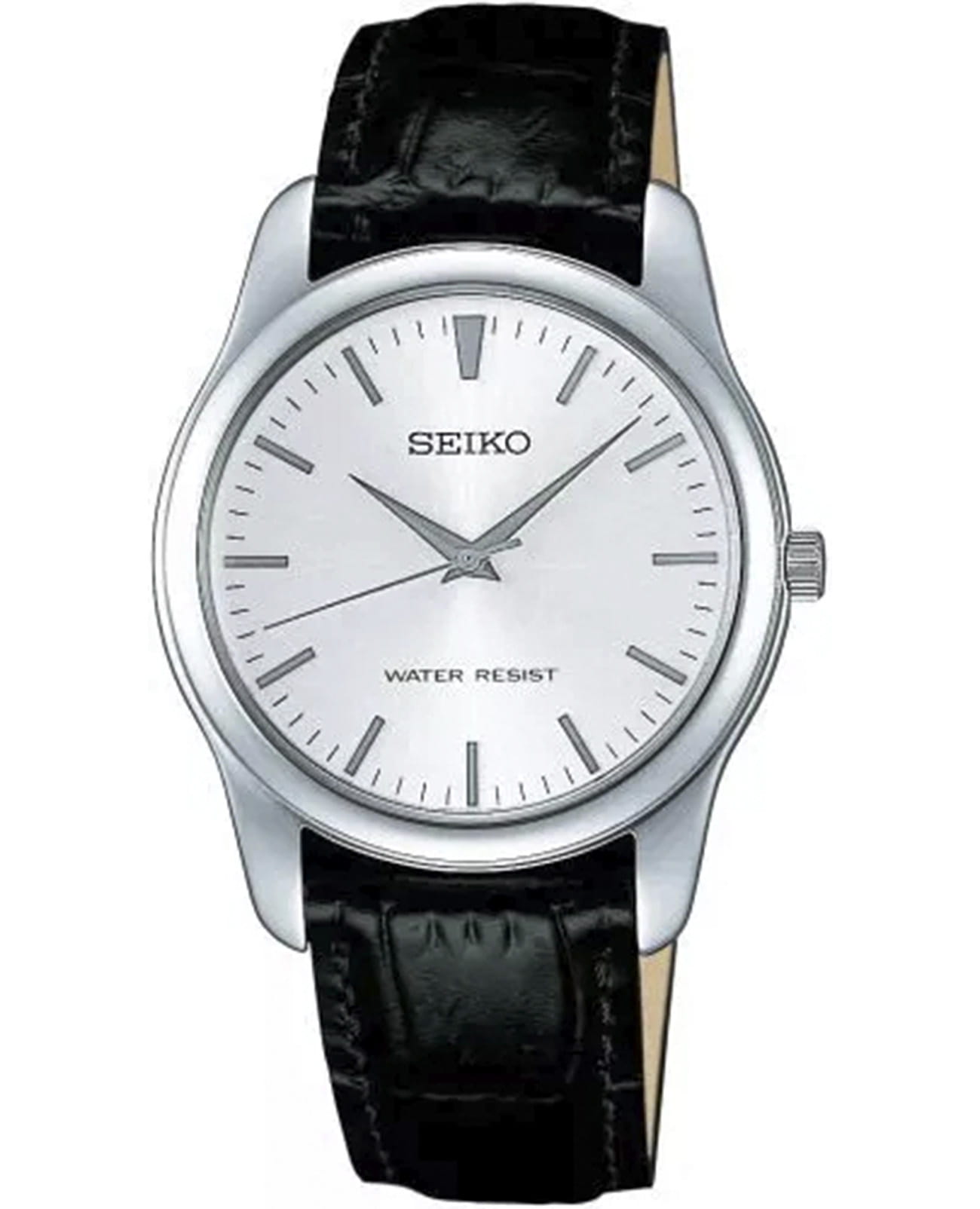 Мужские кварцевые часы Seiko — это надёжный и универсальный аксессуар. Корпус диаметром 36 мм выполнен из нержавеющей стали. Циферблат серебристого цвета оформлен индексами и стрелками, включая центральную секундную стрелку. Циферблат защищён прочным закалённым минеральным стеклом Hardlex минеральным стекломМинеральное стеклоМинеральное стекло представляет собой искусственно выращенный минерал кварца. Такое стекло отличается особой устойчивостью к повреждениям и царапинам. Уступает по некоторым качествам сапфировому стеклу.. Часы оснащены чёрным кожаным ремешком на классической пряжке. Водонепроницаемость 30 м позволяет использовать часы в повседневных условиях. Идеальный выбор для тех, кто ценит японское качество и классический дизайн.