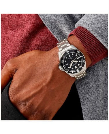 Мужские наручные часы Seiko SNE597P1 из коллекции Prospex сочетают в себе классический дизайн и надежность современных технологий. Модель обладает круглым корпусом диаметром 41 мм, изготовленным из нержавеющей стали, что обеспечивает высокую устойчивость к внешним воздействиям . Толщина корпуса составляет 11,34 мм, а для защиты используется сапфировое стеклоСапфировое стеклоПрочный и надёжный материал из кристалла сапфира синтетического происхождения, характеризующийся особой твёрдостью и устойчивостью к царапинам и повреждениям., обеспечивающее прочную защиту от царапин .  Браслет также выполнен из нержавеющей стали с раскладной застежкойРаскладная застёжкаТакой тип застёжки используется только на браслетах из металла. Она никогда не раскрывается полностью, происходит разделение на 2 и более частей. Раскладывающая застёжка снизит вероятность потери часов к минимуму., гарантирующей комфортное ношение . Циферблат черного цвета украшен текстурой, которая подчеркивает элегантный стиль модели. Часы оснащены функцией отображения даты на позиции «3 часа» .  Водонепроницаемость составляет 200 метров, что позволяет использовать часы для плавания и других водных видов спорта . Часы также оснащены люминесцентным покрытиемЛюминесцентное покрытиеПозволяет считывать показания времени в темноте. Производители наносят на стрелки, часовые индексы, безель или поверхность циферблата светонакопительный состав, дающий холодное свечение. на стрелках и метках, обеспечивающим отличную видимость в темноте .