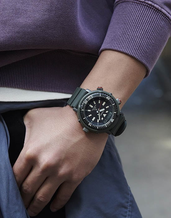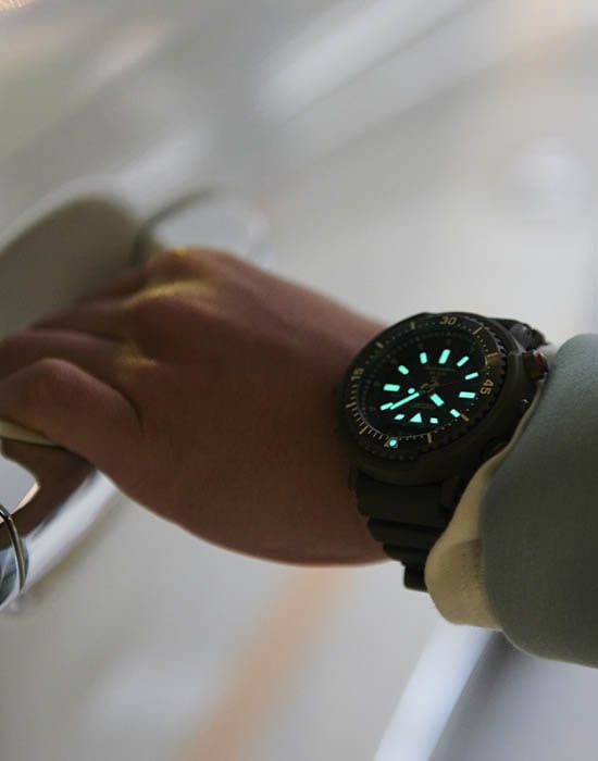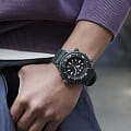 Японские мужские часы Seiko SNJ031P1 из коллекции Prospex стали перевоплощением легендарного хронографаХронографФункция позволяет измерять отрезки времени с особой точностью: часы, минуты, секунды. Верным признаком хронографа является наличие на циферблате 3 дополнительных окошек-счётчиков. 80-х годов, который предпочитал носить актёр Арнольд Шварценеггер. Наручные часы отражают брутальный, спортивный характер. Внешний облик позаимствован у предшественника Seiko H558-5009, выполненный в дайверском стиле. Аксессуар работает за счёт японского кварцевого калибра Seiko H851, получающего энергию за счёт источников света – реализация технологии . При полностью заряженном элементе питания модель проработает 6 месяцев без необходимости подзарядки. Противоударный корпусУдаропрочный корпусМеханизм заключён в корпус, выполненный из современных материалов, устойчивых к ударам, механическим повреждениям и падению с высоты: инновационный пластик, карбон, нержавеющая сталь, титан. имеет двойную конструкцию, где нержавеющая сталь 316L дополнительно защищена полимерными протекторами. Циферблат оснащён минеральным закаленным стеклом Hardlex, прочным и устойчивым к царапинам. Сохраняется водостойкость до 200 метров в соответствии со стандартом ISO 6425. Дисплей подсвечивается светодиодомСветодиодная подсветкаСветодиодная или LED-подсветка обеспечивает появление яркого холодного свечения за счёт LED-элементов - маленьких лампочек. Они потребляют минимальное количество энергии, чаще всего можно встретить 1 светодиод, в нижней части циферблата., стрелки и индексы имеют люминесцентную подсветкуЛюминесцентное покрытиеПозволяет считывать показания времени в темноте. Производители наносят на стрелки, часовые индексы, безель или поверхность циферблата светонакопительный состав, дающий холодное свечение.. Функции: будильник, секундомер, вечный календарьВечный календарьКлассическое часовое усложнение, представляющее собой календарь, рассчитанный на несколько лет вперёд (стандартно – до 2099 года). Определяет текущую дату, день недели, месяц.. Диаметр корпуса: 47,8 мм.