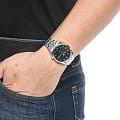 Наручные часы выполнены в классическом стиле, спортивные элементы делают акцент на надёжности и функциональности модели. Традиционный характер выражается в оснащении аксессуара японским механизмом Seiko 7S26 с возможностью ручного и автоматического завода. Калибр отличается сохранением запаса хода на 40 часов, его работу можно отследить через прозрачную завинчивающуюся заднюю крышку. В качестве основного материала была выбрана хирургическая сталь 316L, характеризующаяся устойчивостью к царапинам, повреждениям. Защиту циферблата обеспечивает прочное минеральное стеклоМинеральное стеклоМинеральное стекло представляет собой искусственно выращенный минерал кварца. Такое стекло отличается особой устойчивостью к повреждениям и царапинам. Уступает по некоторым качествам сапфировому стеклу. Hardlex. На стрелки нанесено люминесцентное покрытиеЛюминесцентное покрытиеПозволяет считывать показания времени в темноте. Производители наносят на стрелки, часовые индексы, безель или поверхность циферблата светонакопительный состав, дающий холодное свечение.. Водостойкость при давлении до 5 бар позволяет принимать душ в часах, они выдержат дождь или мойку машины. На позиции 3 часов размещено окошко даты и дня недели. Диаметр корпуса: 37 мм.