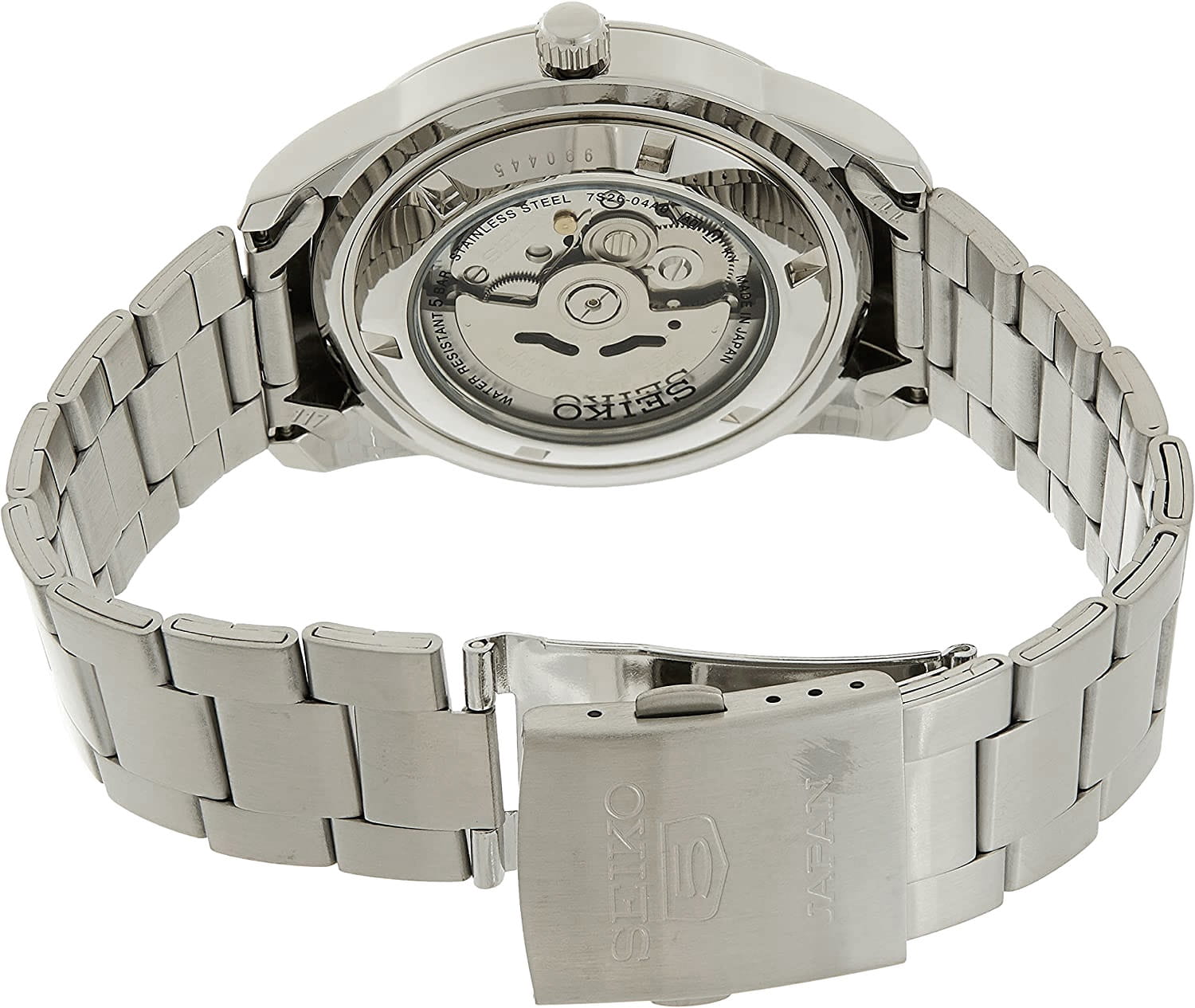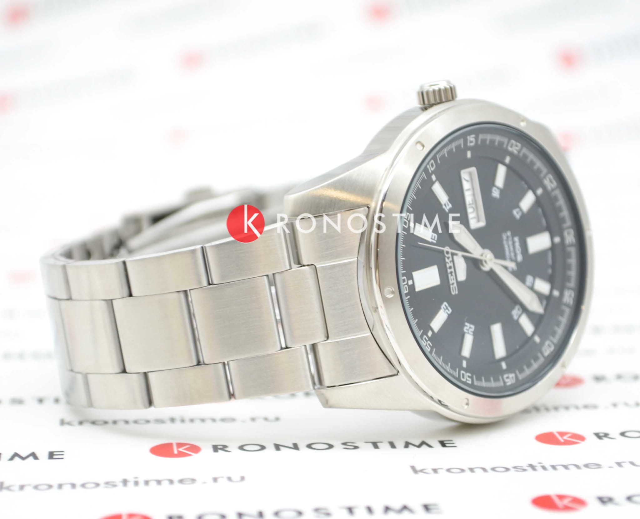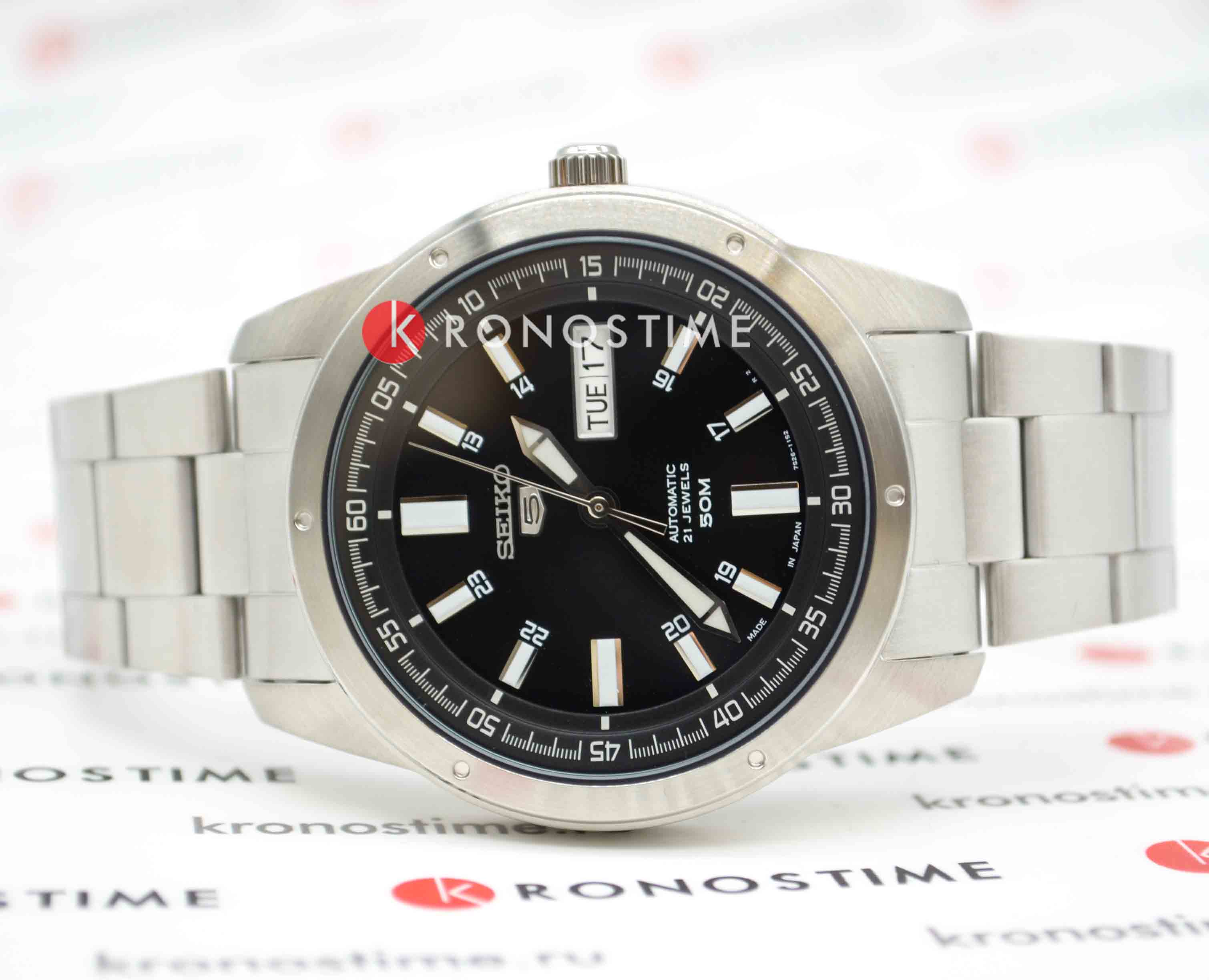 Мужские японские часы с запасом хода 41 час Seiko 5 Regular SNKN13J1 с минеральным стекломМинеральное стеклоМинеральное стекло представляет собой искусственно выращенный минерал кварца. Такое стекло отличается особой устойчивостью к повреждениям и царапинам. Уступает по некоторым качествам сапфировому стеклу., механический механизм (автоматический калибр) с высокой точностью. Класс водозащиты: 50 метров, позволит защитить корпус от случайных брызг или капель дождя. Корпус и браслет часов изготовлен из стали. Браслет на раскладной застёжкеРаскладная застёжкаТакой тип застёжки используется только на браслетах из металла. Она никогда не раскрывается полностью, происходит разделение на 2 и более частей. Раскладывающая застёжка снизит вероятность потери часов к минимуму. с кнопками. Окошко даты и дня недели находятся в положении 3 часа. Стрелки и метки с люминесцентным покрытиемЛюминесцентное покрытиеПозволяет считывать показания времени в темноте. Производители наносят на стрелки, часовые индексы, безель или поверхность циферблата светонакопительный состав, дающий холодное свечение..