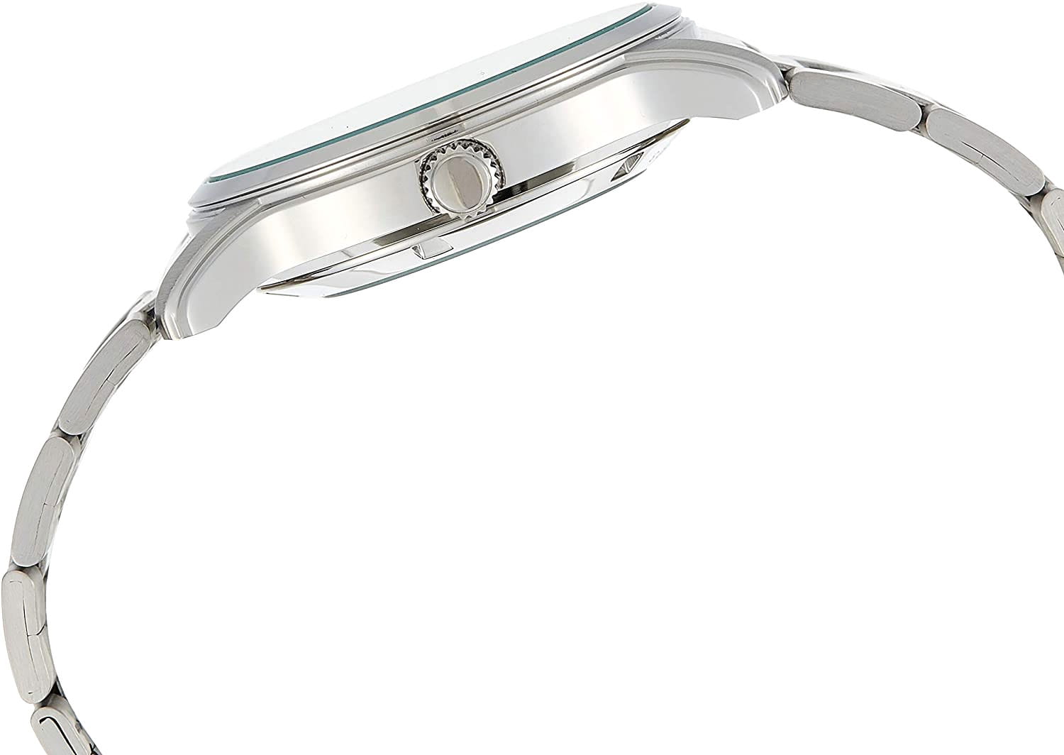 Наручные часы с золотистыми деталями выполнены в классическом стиле, спортивные элементы делают акцент на надёжности и функциональности модели. Традиционный характер выражается в оснащении аксессуара японским механизмом Seiko 7S26 с возможностью ручного и автоматического завода. Калибр отличается сохранением запаса хода на 41 час, его работу можно отследить через прозрачную завинчивающуюся заднюю крышку. В качестве основного материала была выбрана хирургическая сталь 316L, характеризующаяся устойчивостью к царапинам, повреждениям. Защиту циферблата обеспечивает прочное минеральным стекломМинеральное стеклоМинеральное стекло представляет собой искусственно выращенный минерал кварца. Такое стекло отличается особой устойчивостью к повреждениям и царапинам. Уступает по некоторым качествам сапфировому стеклу.. На стрелки и метки нанесено яркое люминесцентное покрытиеЛюминесцентное покрытиеПозволяет считывать показания времени в темноте. Производители наносят на стрелки, часовые индексы, безель или поверхность циферблата светонакопительный состав, дающий холодное свечение.. Водостойкость при давлении до 5 бар позволяет принимать душ в часах, они выдержат дождь или мойку машины. На позиции 3 часов размещено окошко даты и дня недели.