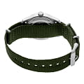 Механические часы Seiko 5 Sports Field series SRPG33K1S с автоподзаводом и возможностью ручной подзаводки оснащены калибром 4R36, в котором используется 24 драгоценных камня. Механизм обеспечивает запас хода до 41 часа и дополнен функцией стоп-секунды для точной установки времени, а также отображением дня недели и даты. Корпус изготовлен из нержавеющей стали, а циферблат защищён минеральным стекломМинеральное стеклоМинеральное стекло представляет собой искусственно выращенный минерал кварца. Такое стекло отличается особой устойчивостью к повреждениям и царапинам. Уступает по некоторым качествам сапфировому стеклу. Hardlex с выпуклой формой, устойчивым к мелким повреждениям. Циферблат дополнен стрелками и метками с фирменным люминесцентным покрытиемЛюминесцентное покрытиеПозволяет считывать показания времени в темноте. Производители наносят на стрелки, часовые индексы, безель или поверхность циферблата светонакопительный состав, дающий холодное свечение. LumiBrite, обеспечивающим отличную читаемость даже в темноте. Часы обладают водонепроницаемостью , что соответствует защите на глубине до 100 метров, и имеют защиту от магнитных полей до 4800 А/м. Задняя крышка — завинчивающаяся и прозрачная, что позволяет рассмотреть работу механизма и подчёркивает внимание к деталям внутренней отделки. Ремешок из прочного нейлона добавляет модели лёгкости и спортивного стиля, обеспечивая комфорт при ношении. Расстояние между ушками составляет 20 мм, что делает модель совместимой с различными типами ремешков. Эти часы станут универсальным аксессуаром для тех, кто ценит сочетание технологичности, прочности и эстетики — идеальный выбор для повседневной носки и активного образа жизни.