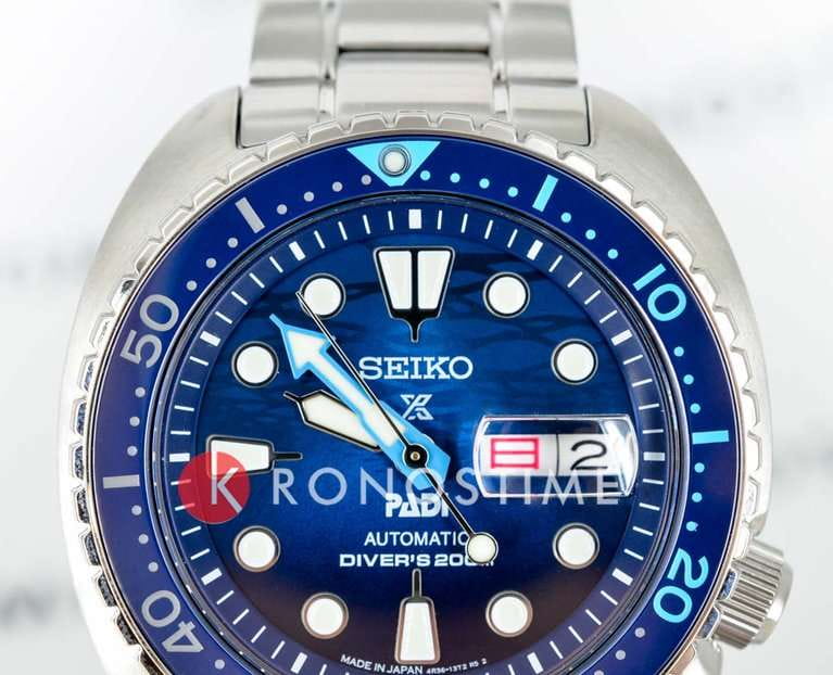 Seiko Prospex PADI Special Edition SRPK01K1 — профессиональные автоматические часы, созданные в рамках сотрудничества с PADI, крупнейшей организацией инструкторов по дайвингу. Массивный корпус диаметром 45 мм выполнен из нержавеющей стали и защищён завинчивающейся задней крышкой и заводной головкой. Циферблат закрыт прочным сапфировым стекломСапфировое стеклоПрочный и надёжный материал из кристалла сапфира синтетического происхождения, характеризующийся особой твёрдостью и устойчивостью к царапинам и повреждениям. с антибликовым покрытиемАнтибликовое покрытиеСлой оксида металла в 0,13-0,3 микрон, благодаря которому стекло часов не бликует и не отражает свет. Антибликовое покрытие уменьшает отражение света в 10 раз, обеспечивая отличную читаемость показателей циферблата. и увеличительным стеклом над календарём. Градиентный синий циферблат с волнистым узором имитирует солнечные блики на воде и украшен логотипом PADI. Метки и стрелки покрыты люминесцентным покрытиемЛюминесцентное покрытиеПозволяет считывать показания времени в темноте. Производители наносят на стрелки, часовые индексы, безель или поверхность циферблата светонакопительный состав, дающий холодное свечение. LumiBrite для превосходной читаемости в темноте и под водой. БезельБезельВнешний ободок, закрепляющий стекло. В спортивных часах так называется поворотное кольцо с делениями на циферблате, выполняет роль таймера – замеряет отрезки времени на шкале. Неподвижный безель – элемент декора. Однонаправленно вращающийся безель на дайверских часах позволяет фиксировать моменты погружения и выныривания на поверхность. с PVD-покрытиемPVDУльтратонкое покрытие наносится в технике вакуумного напыления, сочетает в себе нитрид титана особой прочности со слоем золота или оксида хрома. Несёт в себе декоративную или защитную функцию.. Модель оснащена автоматическим механизмом Seiko 4R36 с ручным заводом, 24 камнями и функцией остановки секундной стрелки. Запас хода составляет около 41 часа. На циферблате — отображение времени, даты и дня недели на позиции «3 часа». Браслет из нержавеющей стали снабжён тройной раскладной застёжкойРаскладная застёжкаТакой тип застёжки используется только на браслетах из металла. Она никогда не раскрывается полностью, происходит разделение на 2 и более частей. Раскладывающая застёжка снизит вероятность потери часов к минимуму. с кнопками и удлинением для дайверовУдлинение для дайверовЗастёжка с удлинением для дайверов представляет собой безопасное крепление, которое позволяет надевать часы поверх гидрокостюма. Гибкая застёжка удлиняется на 1-2 миллиметра.. Часы соответствуют ISO-стандарту и обладают водонепроницаемостью до 200 метров, что делает их надёжным выбором как для дайвинга, так и для повседневной носки. SRPK01 — мощная и функциональная модель с морским характером и профессиональными возможностями.