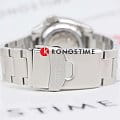 Корпус и браслет часов изготовлены из стали, а поворотный безельБезельВнешний ободок, закрепляющий стекло. В спортивных часах так называется поворотное кольцо с делениями на циферблате, выполняет роль таймера – замеряет отрезки времени на шкале. Неподвижный безель – элемент декора. Однонаправленно вращающийся безель на дайверских часах позволяет фиксировать моменты погружения и выныривания на поверхность. частично покрыт PVD-покрытиемPVDУльтратонкое покрытие наносится в технике вакуумного напыления, сочетает в себе нитрид титана особой прочности со слоем золота или оксида хрома. Несёт в себе декоративную или защитную функцию., что придает часам современный и стильный вид. Окошки даты и дня недели удобно расположены на отметке 3 часа. Стрелки с люминесцентным покрытиемЛюминесцентное покрытиеПозволяет считывать показания времени в темноте. Производители наносят на стрелки, часовые индексы, безель или поверхность циферблата светонакопительный состав, дающий холодное свечение. позволяют четко считывать время даже в условиях низкой освещенности. Браслет на раскладной застёжкеРаскладная застёжкаТакой тип застёжки используется только на браслетах из металла. Она никогда не раскрывается полностью, происходит разделение на 2 и более частей. Раскладывающая застёжка снизит вероятность потери часов к минимуму. обеспечивает удобное и надежное крепление на запястье.