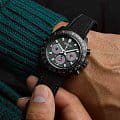 Мужские японские кварцевые часы-хронографХронографФункция позволяет измерять отрезки времени с особой точностью: часы, минуты, секунды. Верным признаком хронографа является наличие на циферблате 3 дополнительных окошек-счётчиков. Seiko Prospex SSC923P1 оснащены сапфировым стекломСапфировое стеклоПрочный и надёжный материал из кристалла сапфира синтетического происхождения, характеризующийся особой твёрдостью и устойчивостью к царапинам и повреждениям., которое гарантирует исключительную прочность и устойчивость к царапинам. Корпус этих часов выполнен из высококачественной стали с PVD-покрытиемPVDУльтратонкое покрытие наносится в технике вакуумного напыления, сочетает в себе нитрид титана особой прочности со слоем золота или оксида хрома. Несёт в себе декоративную или защитную функцию., что придает им дополнительную защиту и изысканный внешний вид. На циферблате расположено окошко даты между 4 и 5 часами, обеспечивая удобство контроля времени. БезельБезельВнешний ободок, закрепляющий стекло. В спортивных часах так называется поворотное кольцо с делениями на циферблате, выполняет роль таймера – замеряет отрезки времени на шкале. Неподвижный безель – элемент декора. Однонаправленно вращающийся безель на дайверских часах позволяет фиксировать моменты погружения и выныривания на поверхность. часов украшен шкалой тахиметраТахиметрРазмеченная шкала, располагается на ободке или безеле часов. Тахиметр позволяет рассчитать скорость на определённом участке пути, расстояние измеряется в километрах или милях., которая позволяет легко измерять скорость движения. Водонепроницаемость класса 100 метров дает возможность носить эти часы во время плавания, занятий водными видами спорта и других активностей, связанных с водой. Стрелки и метки часов покрыты люминесцентным составомЛюминесцентное покрытиеПозволяет считывать показания времени в темноте. Производители наносят на стрелки, часовые индексы, безель или поверхность циферблата светонакопительный состав, дающий холодное свечение., благодаря чему они остаются хорошо видимыми даже в темноте. Ремешок выполнен из прочного нейлона на кожаной основе и оснащен стандартной застежкой, обеспечивающей комфорт и надежность в использовании.