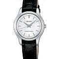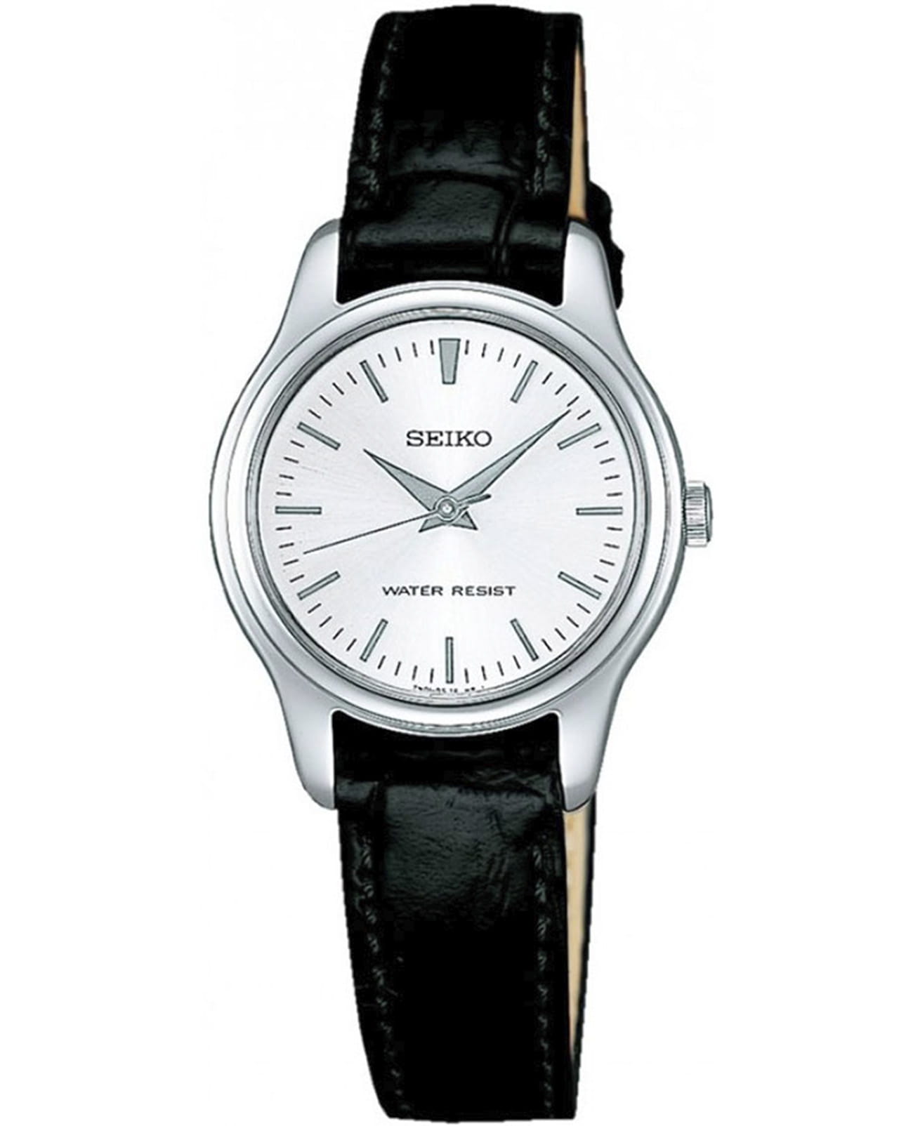 Женские кварцевые часы Seiko — это надёжный и универсальный аксессуар. Корпус диаметром 25,8 мм и толщиной 6,2 мм выполнен из нержавеющей стали. Циферблат серебристого цвета оформлен индексами и стрелками, включая центральную секундную стрелку. Циферблат защищён прочным закалённым минеральным стеклом Hardlex минеральным стекломМинеральное стеклоМинеральное стекло представляет собой искусственно выращенный минерал кварца. Такое стекло отличается особой устойчивостью к повреждениям и царапинам. Уступает по некоторым качествам сапфировому стеклу.. Механизм — японское кварцевое движение калибра 7N01 с высокой точностью хода (±10–15 сек. в месяц). Часы оснащены чёрным кожаным ремешком на классической пряжке. Водонепроницаемость 30 м позволяет использовать часы в повседневных условиях. Идеальный выбор для тех, кто ценит японское качество и классический дизайн.