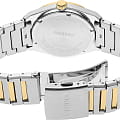 Мужские японские часы Seiko Conceptual Series Dress SUR558P1 с сапфировым стекломСапфировое стеклоПрочный и надёжный материал из кристалла сапфира синтетического происхождения, характеризующийся особой твёрдостью и устойчивостью к царапинам и повреждениям., кварцевый механизм с высокой точностью. Класс водозащиты: 100 метров, позволит плавать, нырять и заниматься другими водными видами спорта. Корпус часов изготовлен из стали. Стальной браслет с частичным PVD-покрытиемPVDУльтратонкое покрытие наносится в технике вакуумного напыления, сочетает в себе нитрид титана особой прочности со слоем золота или оксида хрома. Несёт в себе декоративную или защитную функцию. на раскладной застёжкеРаскладная застёжкаТакой тип застёжки используется только на браслетах из металла. Она никогда не раскрывается полностью, происходит разделение на 2 и более частей. Раскладывающая застёжка снизит вероятность потери часов к минимуму.. Стрелки и метки с люминесцентным покрытиемЛюминесцентное покрытиеПозволяет считывать показания времени в темноте. Производители наносят на стрелки, часовые индексы, безель или поверхность циферблата светонакопительный состав, дающий холодное свечение. LumiBrite. Окошко даты находится в положении 3 часа. Неподвижный безельБезельВнешний ободок, закрепляющий стекло. В спортивных часах так называется поворотное кольцо с делениями на циферблате, выполняет роль таймера – замеряет отрезки времени на шкале. Неподвижный безель – элемент декора. Однонаправленно вращающийся безель на дайверских часах позволяет фиксировать моменты погружения и выныривания на поверхность. с PVD-покрытиемPVDУльтратонкое покрытие наносится в технике вакуумного напыления, сочетает в себе нитрид титана особой прочности со слоем золота или оксида хрома. Несёт в себе декоративную или защитную функцию..