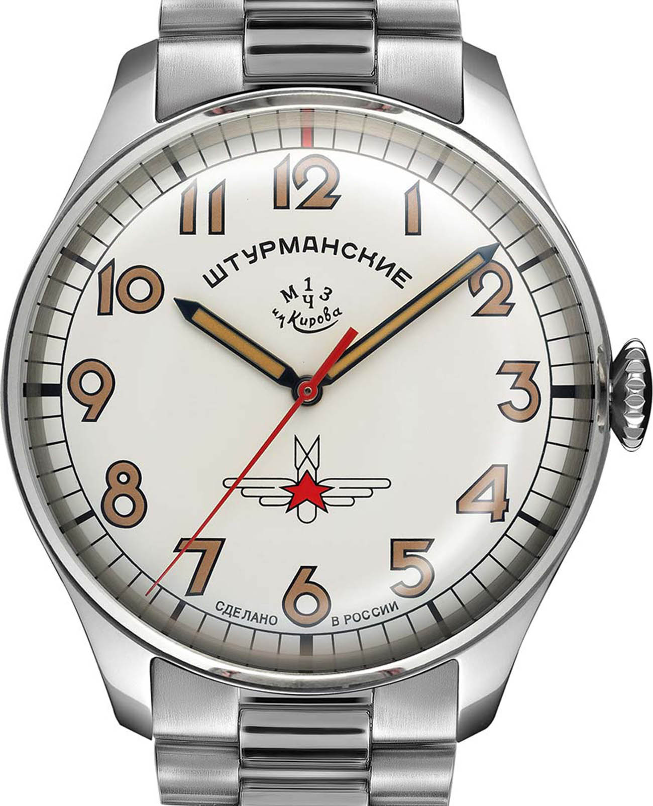 Штурманские мужские российские механические часы 2609/9045924B с механизмом высокой точности. Класс водозащиты: 30 метров, позволит защитить корпус от случайных брызг или капель дождя. Корпус часов изготовлен из стали. Сапфировое стеклоСапфировое стеклоПрочный и надёжный материал из кристалла сапфира синтетического происхождения, характеризующийся особой твёрдостью и устойчивостью к царапинам и повреждениям. устойчивое к мелким механическим повреждениям. Стальной браслет на раскладной застёжкойРаскладная застёжкаТакой тип застёжки используется только на браслетах из металла. Она никогда не раскрывается полностью, происходит разделение на 2 и более частей. Раскладывающая застёжка снизит вероятность потери часов к минимуму.. Стрелки и метки с люминесцентным покрытиемЛюминесцентное покрытиеПозволяет считывать показания времени в темноте. Производители наносят на стрелки, часовые индексы, безель или поверхность циферблата светонакопительный состав, дающий холодное свечение.. Задняя крышка украшена портретом Юрия Гагарина и крепится на 4-х винтах.