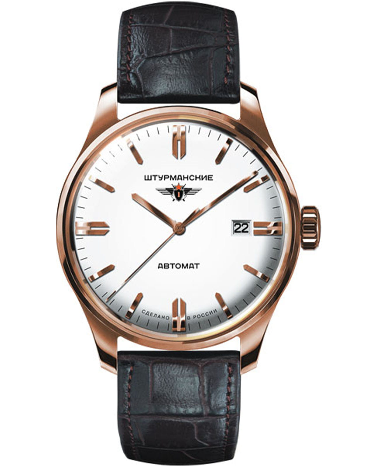Мужские российские механические часы с минеральным стекломМинеральное стеклоМинеральное стекло представляет собой искусственно выращенный минерал кварца. Такое стекло отличается особой устойчивостью к повреждениям и царапинам. Уступает по некоторым качествам сапфировому стеклу. Штурманские Гагарин 9015/1279573, механизм с высокой точностью. Класс водозащиты: 50 метров, позволит защитить корпус от случайных брызг или капель дождя. Корпус часов изготовлен из стали с PVD-покрытиемPVDУльтратонкое покрытие наносится в технике вакуумного напыления, сочетает в себе нитрид титана особой прочности со слоем золота или оксида хрома. Несёт в себе декоративную или защитную функцию.. Кожаный ремешок на стандартной застёжке. Стрелки и метки с люминесцентным покрытиемЛюминесцентное покрытиеПозволяет считывать показания времени в темноте. Производители наносят на стрелки, часовые индексы, безель или поверхность циферблата светонакопительный состав, дающий холодное свечение.. Калибр Miyota 9015. В механизме 24 камня, частота 28800 полуколебаний в час. Запас хода 42 часа. Апертура даты.