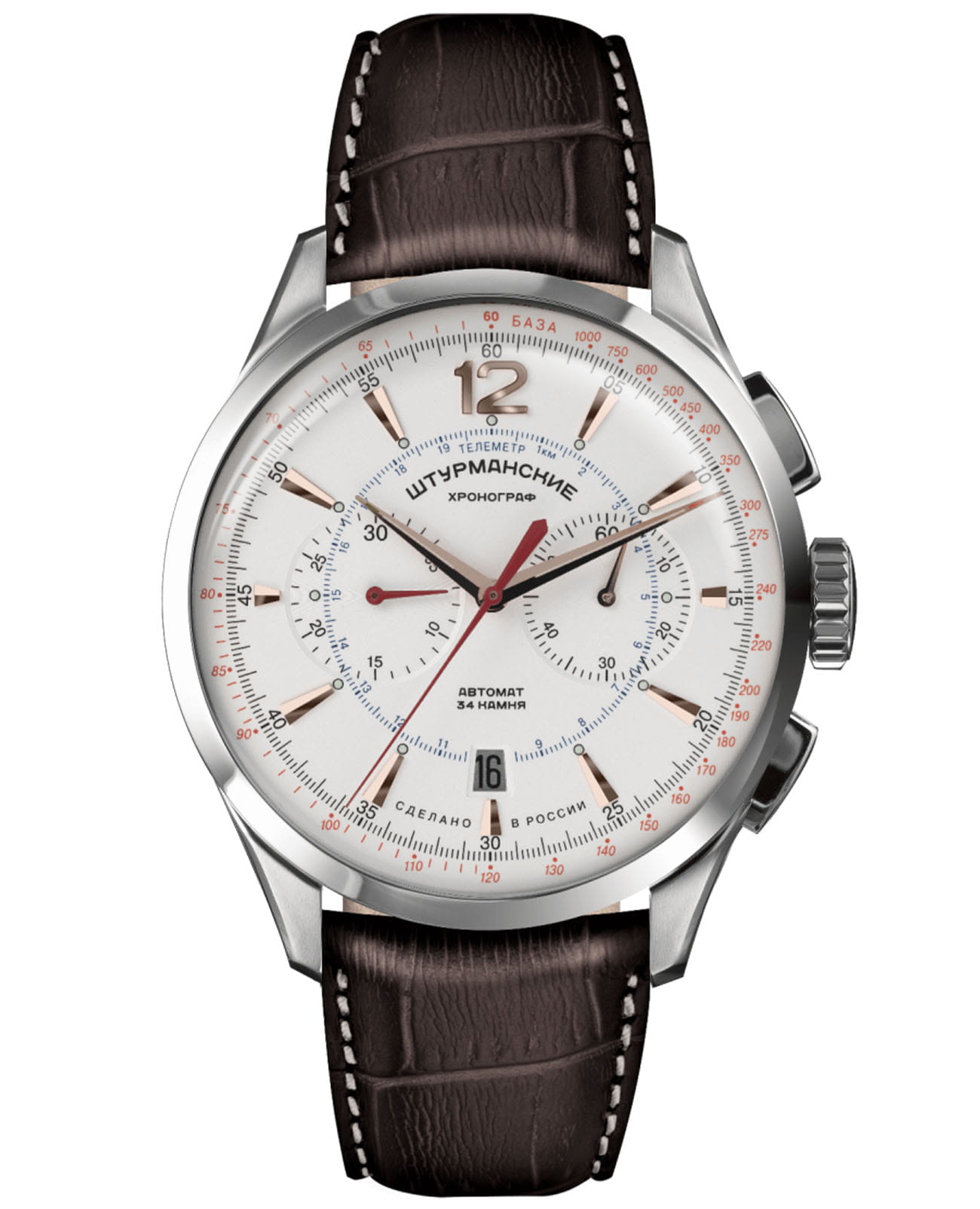 Мужские российские механические часы-хронографХронографФункция позволяет измерять отрезки времени с особой точностью: часы, минуты, секунды. Верным признаком хронографа является наличие на циферблате 3 дополнительных окошек-счётчиков. с секундомеромСекундомерСекундоме́р — прибор, способный измерять интервалы времени с точностью до долей секунды. Штурманские Открытый Космос NE86/1855018, механический механизм (автоматический калибр) с высокой точностью. Лимитированная серия - 500 экземпляров, посвящена первому выходу человека в открытый космос. Индивидуальная нумерация. Сапфировое стеклоСапфировое стеклоПрочный и надёжный материал из кристалла сапфира синтетического происхождения, характеризующийся особой твёрдостью и устойчивостью к царапинам и повреждениям. устойчивое к появлению царапин, обладающее высокой прозрачностью. Класс водозащиты: 50 метров, позволит защитить корпус от случайных брызг или капель дождя. Корпус часов изготовлен из стали. Кожаный ремешок на стандартной застёжке. Стрелки и метки с люминесцентным покрытиемЛюминесцентное покрытиеПозволяет считывать показания времени в темноте. Производители наносят на стрелки, часовые индексы, безель или поверхность циферблата светонакопительный состав, дающий холодное свечение.. Стальной корпус надежно защищает от повреждений механический японский калибр Seiko NE86 на 34 камня с запасом хода 42 часа. Подзавод у часов автоматический.