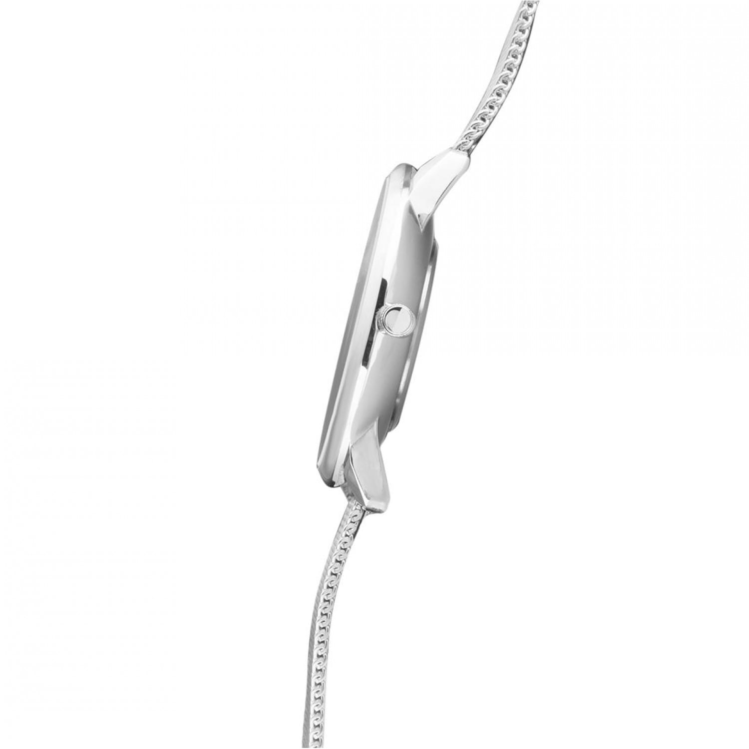 Класс водозащиты часов составляет 30 метров, что позволяет защитить корпус от случайных брызг и капель дождя.Стальной браслет миланского плетения на раскладном замкеРаскладной замокДанный вариант застежки используется только на часах с металлическим браслетом. Отличительная особенность такого крепления в том, что длина браслета становится универсальной и вы можете самостоятельно отрегулировать нужный вам размер – застежка просто двигается по браслету часов.. Эти часы идеально подойдут для повседневного использования, сочетая в себе стиль, надежность и функциональность.
