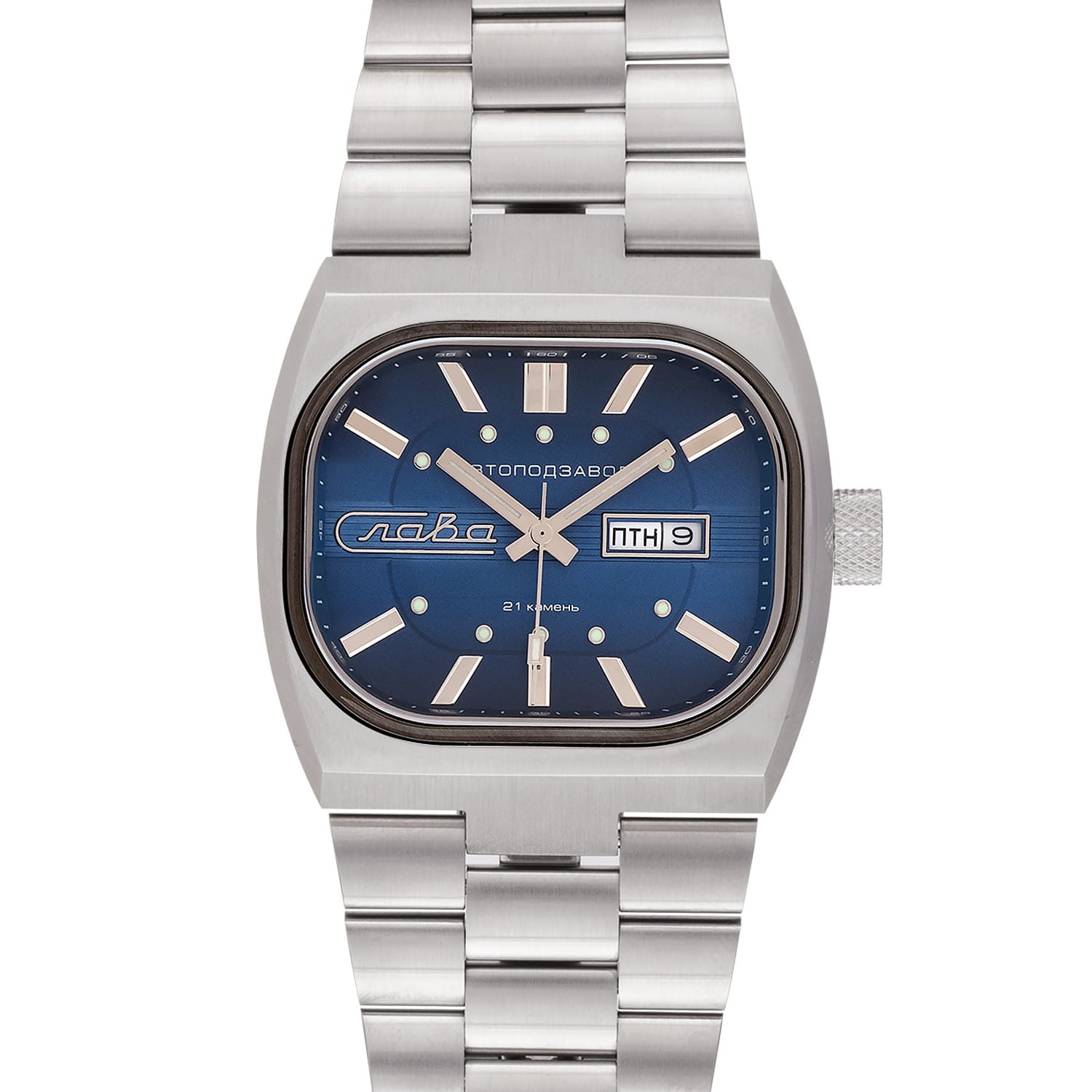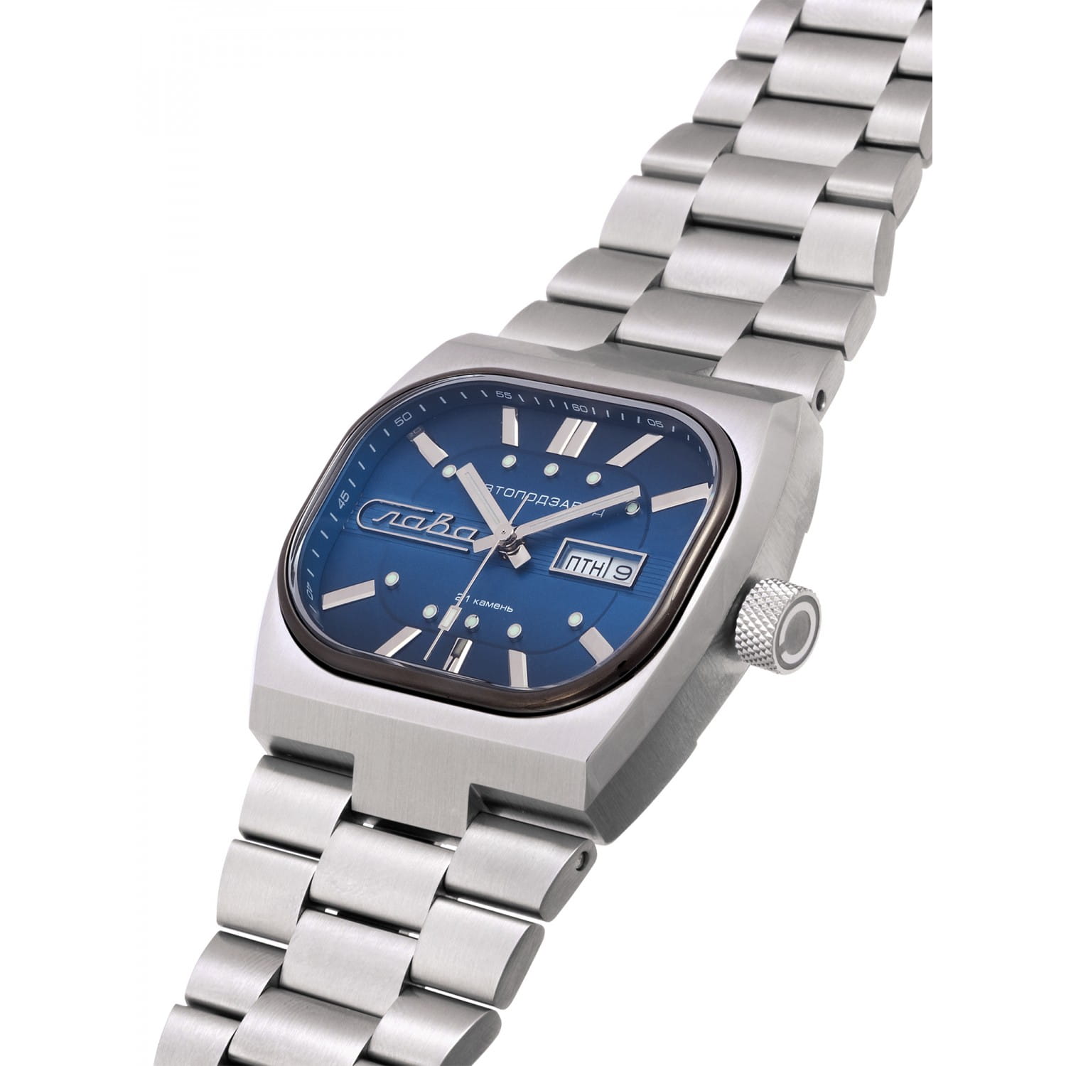 Российские часы Слава 3042703/100-8205 оснащены механизмом Miyota 8205, что обеспечивает исключительную надежность и точность хода. Корпус и браслет часов выполнены из стали, что придает им долговечность и устойчивость к внешним воздействиям. Сапфировое стеклоСапфировое стеклоПрочный и надёжный материал из кристалла сапфира синтетического происхождения, характеризующийся особой твёрдостью и устойчивостью к царапинам и повреждениям.. Класс водозащиты часов составляет 100 метров, позволит плавать, нырять и заниматься другими водными видами спорта. Эти часы идеально подойдут для повседневного использования, сочетая в себе стиль, надежность и функциональность. Стрелки и метки с люминесцентным покрытиемЛюминесцентное покрытиеПозволяет считывать показания времени в темноте. Производители наносят на стрелки, часовые индексы, безель или поверхность циферблата светонакопительный состав, дающий холодное свечение.. Окошки дня недели и даты находятся в положении 3 часа. Стальной браслет на раскладной застёжкеРаскладная застёжкаТакой тип застёжки используется только на браслетах из металла. Она никогда не раскрывается полностью, происходит разделение на 2 и более частей. Раскладывающая застёжка снизит вероятность потери часов к минимуму..