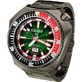 Стильные часы Слава Садко 5006169/100-2427 — станут надежным спутником как в повседневной жизни, так и при покорении морских глубин. Эти часы, созданные в России, оснащены механическим механизмом Слава 2427 с автоподзаводом, который обеспечивает точность и надежность. Корпус выполнен из высококачественной стали 316L с IP-покрытиемIP-покрытиеМетод ионного напыления. Демонстрирует повышенную устойчивость к истиранию, окислению и химическим веществам. Под воздействием высокого давления и температуры около 1500°C молекулы металла надёжно соединяются с частицами корпуса часов. черного цвета. Поворотный безельБезельВнешний ободок, закрепляющий стекло. В спортивных часах так называется поворотное кольцо с делениями на циферблате, выполняет роль таймера – замеряет отрезки времени на шкале. Неподвижный безель – элемент декора. Однонаправленно вращающийся безель на дайверских часах позволяет фиксировать моменты погружения и выныривания на поверхность. часов с IP-покрытиемIP-покрытиеМетод ионного напыления. Демонстрирует повышенную устойчивость к истиранию, окислению и химическим веществам. Под воздействием высокого давления и температуры около 1500°C молекулы металла надёжно соединяются с частицами корпуса часов. красного и черного цвета придаёт модели особую элегантность и долговечность. Яркий зеленый циферблат с метками в виде штрихов надежно защищён сапфировым стекломСапфировое стеклоПрочный и надёжный материал из кристалла сапфира синтетического происхождения, характеризующийся особой твёрдостью и устойчивостью к царапинам и повреждениям., толщина которого составляет 3 мм. Заводная головка с защитой, расположенная в положении 2 часа, и литой стальной браслет с IP-покрытиемIP-покрытиеМетод ионного напыления. Демонстрирует повышенную устойчивость к истиранию, окислению и химическим веществам. Под воздействием высокого давления и температуры около 1500°C молекулы металла надёжно соединяются с частицами корпуса часов. черного цвета и застежкой «бабочка»Застёжка "бабочка"Такой вид застёжки дополняется предохранителями, помогающими избежать случайного раскрытия браслета. Обладают изящным исполнением. обеспечивают комфорт и удобство в использовании. Эти часы имеют водозащиту 500WR, позволяя погружаться на глубину до 50 атмосфер, что делает их идеальными для дайвинга. Автоматический гелиевый клапан добавляет дополнительную надежность при подводных приключениях. Функциональность часов дополнена календарём с отображением числа и дня недели, который удобно расположен в позиции 6 часов. Кнопка быстрого перевода календаря делает настройку простой и лёгкой. Стрелки и метки обладают люминесцентным покрытиемЛюминесцентное покрытиеПозволяет считывать показания времени в темноте. Производители наносят на стрелки, часовые индексы, безель или поверхность циферблата светонакопительный состав, дающий холодное свечение., которое светится в темноте после зарядки на свету, обеспечивая отличную видимость в любых условиях. Каждый экземпляр из лимитированной серии в 500 штук уникален и имеет номер на задней крышке, украшенной объёмным изображением, выполненным методом чеканки. Механизм часов поддерживает 25 камней и работает с частотой 18000 полуколебаний в час, предлагая запас хода до 40 часов и возможность ручного завода. Противоударное 