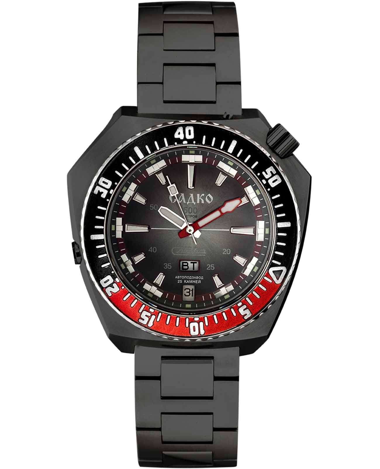 Стильные часы Слава Садко 5006171/100-2427 — станут надежным спутником как в повседневной жизни, так и при покорении морских глубин. Эти часы, созданные в России, оснащены механическим механизмом Слава 2427 с автоподзаводом, который обеспечивает точность и надежность. Корпус выполнен из высококачественной стали 316L с IP-покрытиемIP-покрытиеМетод ионного напыления. Демонстрирует повышенную устойчивость к истиранию, окислению и химическим веществам. Под воздействием высокого давления и температуры около 1500°C молекулы металла надёжно соединяются с частицами корпуса часов. черного цвета. Поворотный безельБезельВнешний ободок, закрепляющий стекло. В спортивных часах так называется поворотное кольцо с делениями на циферблате, выполняет роль таймера – замеряет отрезки времени на шкале. Неподвижный безель – элемент декора. Однонаправленно вращающийся безель на дайверских часах позволяет фиксировать моменты погружения и выныривания на поверхность. часов с IP-покрытиемIP-покрытиеМетод ионного напыления. Демонстрирует повышенную устойчивость к истиранию, окислению и химическим веществам. Под воздействием высокого давления и температуры около 1500°C молекулы металла надёжно соединяются с частицами корпуса часов. красного и черного цвета придаёт модели особую элегантность и долговечность. Черный циферблат с метками в виде штрихов надежно защищён сапфировым стекломСапфировое стеклоПрочный и надёжный материал из кристалла сапфира синтетического происхождения, характеризующийся особой твёрдостью и устойчивостью к царапинам и повреждениям., толщина которого составляет 3 мм. Заводная головка с защитой, расположенная в положении 2 часа, и литой стальной браслет с  IP-покрытиемIP-покрытиеМетод ионного напыления. Демонстрирует повышенную устойчивость к истиранию, окислению и химическим веществам. Под воздействием высокого давления и температуры около 1500°C молекулы металла надёжно соединяются с частицами корпуса часов. черного цвета и застежкой «бабочка»Застёжка "бабочка"Такой вид застёжки дополняется предохранителями, помогающими избежать случайного раскрытия браслета. Обладают изящным исполнением. обеспечивают комфорт и удобство в использовании. Эти часы имеют водозащиту 500WR, позволяя погружаться на глубину до 50 атмосфер, что делает их идеальными для дайвинга. Автоматический гелиевый клапан добавляет дополнительную надежность при подводных приключениях. Функциональность часов дополнена календарём с отображением числа и дня недели, который удобно расположен в позиции 6 часов. Кнопка быстрого перевода календаря делает настройку простой и лёгкой. Стрелки и метки обладают люминесцентным покрытиемЛюминесцентное покрытиеПозволяет считывать показания времени в темноте. Производители наносят на стрелки, часовые индексы, безель или поверхность циферблата светонакопительный состав, дающий холодное свечение., которое светится в темноте после зарядки на свету, обеспечивая отличную видимость в любых условиях. Каждый экземпляр из лимитированной серии в 500 штук уникален и имеет номер на задней крышке, украшенной объёмным изображением, выполненным методом чеканки. Механизм часов поддерживает 25 камней и работает с частотой 18000 полуколебаний в час, предлагая запас хода до 40 часов и возможность ручного завода. Противоударное устро