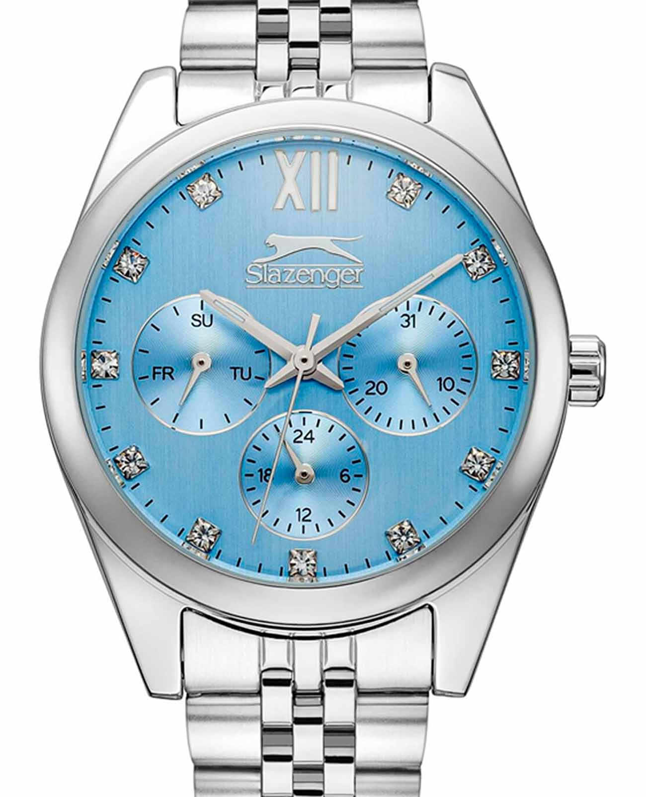 Женские наручные часы Slazenger SL.09.1990.4.06 сочетают в себе элегантный дизайн и практичность современных технологий. Модель обладает круглым корпусом диаметром 34 мм, изготовленным из суперметалла, что обеспечивает высокую устойчивость к внешним воздействиям. Браслет выполнен из того же материала на раскладной застёжкеРаскладная застёжкаТакой тип застёжки используется только на браслетах из металла. Она никогда не раскрывается полностью, происходит разделение на 2 и более частей. Раскладывающая застёжка снизит вероятность потери часов к минимуму., гарантирующей комфортное ношение. Циферблат оснащен индексами для лучшей читаемости времени и дополнен функцией отображения даты. Для защиты применяется минеральное стеклоМинеральное стеклоМинеральное стекло представляет собой искусственно выращенный минерал кварца. Такое стекло отличается особой устойчивостью к повреждениям и царапинам. Уступает по некоторым качествам сапфировому стеклу., обеспечивающее прочную защиту от царапин. Часы работают на японском кварцевом механизме, который питается от батарейки и гарантирует точное время без необходимости подзаводки. Водонепроницаемость составляет 3 атмосферы (30 метров), что позволяет использовать их в повседневной жизни, но не рекомендуется для плавания или занятий водными видами спорта.