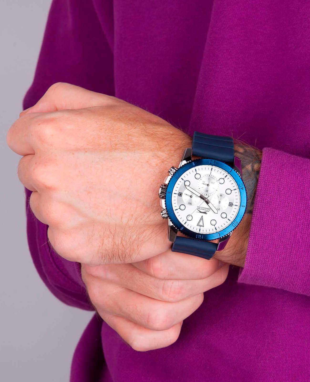 Мужские наручные часы Slazenger SL.09.2012.2.02 сочетают в себе практичный дизайн и надежность современных технологий. Модель обладает круглым корпусом диаметром 47 мм, изготовленным из суперметалла, что обеспечивает высокую устойчивость к внешним воздействиям. БезельБезельВнешний ободок, закрепляющий стекло. В спортивных часах так называется поворотное кольцо с делениями на циферблате, выполняет роль таймера – замеряет отрезки времени на шкале. Неподвижный безель – элемент декора. Однонаправленно вращающийся безель на дайверских часах позволяет фиксировать моменты погружения и выныривания на поверхность. с IP-покрытиемIP-покрытиеМетод ионного напыления. Демонстрирует повышенную устойчивость к истиранию, окислению и химическим веществам. Под воздействием высокого давления и температуры около 1500°C молекулы металла надёжно соединяются с частицами корпуса часов.. Ремешок выполнен из силикона, а застежка стандартная, гарантирующая комфортное ношение и безопасность. Серебристый циферблат дополнен индексами и тремя малыми циферблатами для отображения даты, дня недели и текущего времени в формате 24 часа, а также защищен прочным минеральным стекломМинеральное стеклоМинеральное стекло представляет собой искусственно выращенный минерал кварца. Такое стекло отличается особой устойчивостью к повреждениям и царапинам. Уступает по некоторым качествам сапфировому стеклу. с люминесцентным покрытиемЛюминесцентное покрытиеПозволяет считывать показания времени в темноте. Производители наносят на стрелки, часовые индексы, безель или поверхность циферблата светонакопительный состав, дающий холодное свечение. для лучшей видимости в темноте. Часы работают на кварцевом механизме, что гарантирует точное время без необходимости подзаводки. Водонепроницаемость часов достигает уровня WR50 (5 атмосфер), что позволяет использовать их во время плавания, однако не рекомендуется для глубоководного дайвинга. Вес часов составляет около 102 грамма, что делает их удобными для длительного ношения.