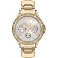 Slazenger SL.09.2021.4.02 – элегантные женские часы, сочетающие стильный дизайн и функциональность. Корпус выполнен из суперметалла с PVD-покрытиемPVDУльтратонкое покрытие наносится в технике вакуумного напыления, сочетает в себе нитрид титана особой прочности со слоем золота или оксида хрома. Несёт в себе декоративную или защитную функцию., придающим модели роскошный внешний вид. Перламутровый циферблат добавляет изысканности, и защищён минеральным стекломМинеральное стеклоМинеральное стекло представляет собой искусственно выращенный минерал кварца. Такое стекло отличается особой устойчивостью к повреждениям и царапинам. Уступает по некоторым качествам сапфировому стеклу., устойчивым к царапинам. БезельБезельВнешний ободок, закрепляющий стекло. В спортивных часах так называется поворотное кольцо с делениями на циферблате, выполняет роль таймера – замеряет отрезки времени на шкале. Неподвижный безель – элемент декора. Однонаправленно вращающийся безель на дайверских часах позволяет фиксировать моменты погружения и выныривания на поверхность. украшен кристаллами. Часы оснащены точным кварцевым механизмом, обеспечивающим надёжное и стабильное отображение времени. Дополнительные функции включают индикацию дня недели и даты, что повышает практичность использования. Браслет из суперметалла с PVD-покрытиемPVDУльтратонкое покрытие наносится в технике вакуумного напыления, сочетает в себе нитрид титана особой прочности со слоем золота или оксида хрома. Несёт в себе декоративную или защитную функцию. оснащён раскладной застёжкойРаскладная застёжкаТакой тип застёжки используется только на браслетах из металла. Она никогда не раскрывается полностью, происходит разделение на 2 и более частей. Раскладывающая застёжка снизит вероятность потери часов к минимуму., обеспечивающей комфортное ношение и надёжную фиксацию на запястье. Водозащита до 30 метров (3 ATM) защищает часы от случайных брызг и дождя, делая их подходящими для повседневного использования.