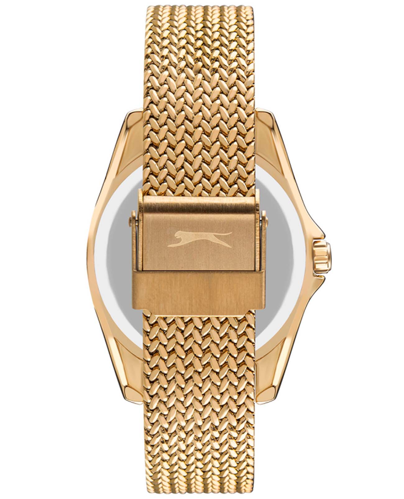 Женские наручные часы Slazenger SL.09.2074.3.05 сочетают в себе элегантный дизайн и практичность современных технологий. Модель обладает круглым корпусом диаметром 37 мм, изготовленным из суперметалла с IP-покрытиемIP-покрытиеМетод ионного напыления. Демонстрирует повышенную устойчивость к истиранию, окислению и химическим веществам. Под воздействием высокого давления и температуры около 1500°C молекулы металла надёжно соединяются с частицами корпуса часов., что обеспечивает высокую устойчивость к внешним воздействиям. Браслет выполнен из того же материала на раскладном замкеРаскладной замокДанный вариант застежки используется только на часах с металлическим браслетом. Отличительная особенность такого крепления в том, что длина браслета становится универсальной и вы можете самостоятельно отрегулировать нужный вам размер – застежка просто двигается по браслету часов., гарантирующей комфортное ношение и безопасность. Для защиты используется минеральное стеклоМинеральное стеклоМинеральное стекло представляет собой искусственно выращенный минерал кварца. Такое стекло отличается особой устойчивостью к повреждениям и царапинам. Уступает по некоторым качествам сапфировому стеклу., обеспечивающее прочную защиту от царапин. Часы работают на кварцевом механизме, что гарантирует точное время без необходимости подзаводки. Водонепроницаемость достигает 3 атмосфер (WR30), что позволяет использовать их при контакте с брызгами воды, однако не рекомендуется для плавания или дайвинга.