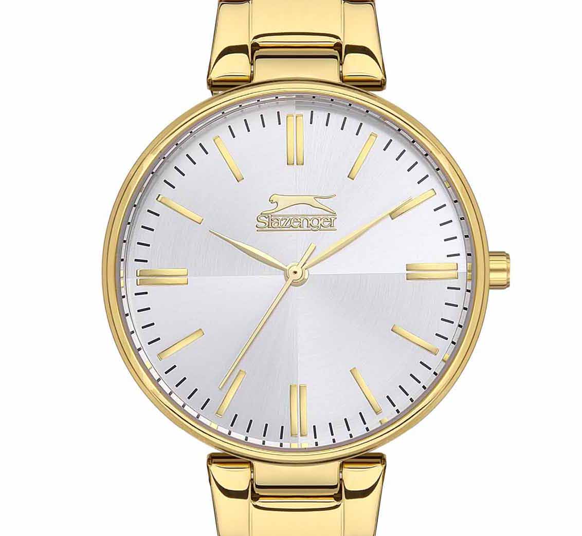 Slazenger SL.09.2122.3.05 — это элегантные женские наручные часы. Они имеют круглый циферблат с диаметром 34 мм, выполненный в золотистом цвете. Корпус часов, толщиной 9 мм, изготовлен из суперметалла с IP-покрытиемIP-покрытиеМетод ионного напыления. Демонстрирует повышенную устойчивость к истиранию, окислению и химическим веществам. Под воздействием высокого давления и температуры около 1500°C молекулы металла надёжно соединяются с частицами корпуса часов., что обеспечивает долговечность и устойчивость к коррозии. Браслет также выполнен из суперметалла IP-покрытиемIP-покрытиеМетод ионного напыления. Демонстрирует повышенную устойчивость к истиранию, окислению и химическим веществам. Под воздействием высокого давления и температуры около 1500°C молекулы металла надёжно соединяются с частицами корпуса часов., придавая часам стильный и современный вид. Размер браслета (H1-H2): 16-14 мм. Часы оснащены кварцевым механизмом, который гарантирует точность хода. Циферблат защищен минеральным стекломМинеральное стеклоМинеральное стекло представляет собой искусственно выращенный минерал кварца. Такое стекло отличается особой устойчивостью к повреждениям и царапинам. Уступает по некоторым качествам сапфировому стеклу., устойчивым к царапинам. Модель водонепроницаема до 30 метров, что позволяет носить ее во время дождя или мытья рук. Браслет оснащен раскладной застёжкойРаскладная застёжкаТакой тип застёжки используется только на браслетах из металла. Она никогда не раскрывается полностью, происходит разделение на 2 и более частей. Раскладывающая застёжка снизит вероятность потери часов к минимуму. для удобства использования. Эти часы сочетают в себе функциональность и стильный дизайн, делая их отличным аксессуаром для повседневного использования и особых случаев.