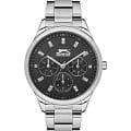 Часы Slazenger SL.09.2151.4.01 — это элегантный аксессуар, который прекрасно дополнит женственный образ. Эти наручные кварцевые часы сочетают в себе стиль и функциональность. Круглый корпус диаметром 35 мм изготовлен из суперметалла, который отличается повышенной прочностью. Черный циферблат выполнен по технологии Sunray, что создает эффект солнечных лучей, и украшен фианитами, придающими часам особую изысканность. На циферблате расположены метки в виде штрихов и точек, а также логотип бренда. Время отображается в 12- и 24-часовом формате, а также предусмотрены отдельные индикаторы для дня недели и числа. Минеральное стеклоМинеральное стеклоМинеральное стекло представляет собой искусственно выращенный минерал кварца. Такое стекло отличается особой устойчивостью к повреждениям и царапинам. Уступает по некоторым качествам сапфировому стеклу. обеспечивает надежную защиту от царапин. Водозащита уровня 30WR позволяет защищать часы от случайных попаданий воды. Металлический браслет с раскладной застёжкойРаскладная застёжкаТакой тип застёжки используется только на браслетах из металла. Она никогда не раскрывается полностью, происходит разделение на 2 и более частей. Раскладывающая застёжка снизит вероятность потери часов к минимуму. гарантирует комфортное ношение и надежную фиксацию на запястье. Рифленая заводная головка добавляет удобства в управлении настройками. Эти часы станут идеальным выбором для тех, кто ценит сочетание классического дизайна и практичности.