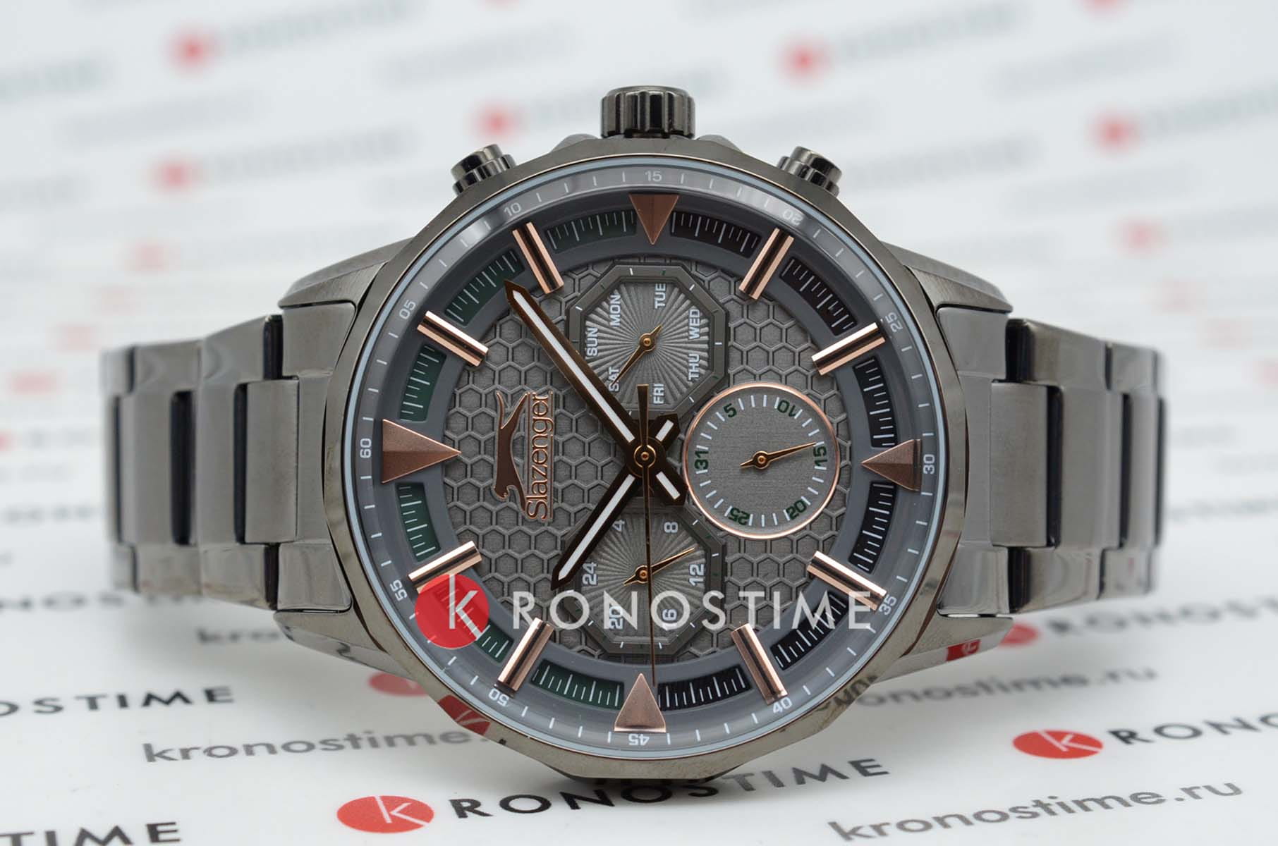 Стильные мужские наручные часы Slazenger SL.09.2216.2.02 станут идеальным аксессуаром для современного мужчины. Этот британский бренд славится своим качеством и надежностью, а данная модель не является исключением. Часы оснащены кварцевым механизмом, что обеспечивает точность хода и долговечность использования. Корпус часов выполнен из металла с черным IP-покрытиемIP-покрытиеМетод ионного напыления. Демонстрирует повышенную устойчивость к истиранию, окислению и химическим веществам. Под воздействием высокого давления и температуры около 1500°C молекулы металла надёжно соединяются с частицами корпуса часов., а прочное минеральное стеклоМинеральное стеклоМинеральное стекло представляет собой искусственно выращенный минерал кварца. Такое стекло отличается особой устойчивостью к повреждениям и царапинам. Уступает по некоторым качествам сапфировому стеклу. защищает циферблат от царапин и повреждений. Элегантный металлический браслет черного цвета снабжен удобной раскладной застёжкойРаскладная застёжкаТакой тип застёжки используется только на браслетах из металла. Она никогда не раскрывается полностью, происходит разделение на 2 и более частей. Раскладывающая застёжка снизит вероятность потери часов к минимуму., что гарантирует комфортное ношение на запястье. Ширина браслета составляет 22 мм, что придает часам солидный вид. Диаметр корпуса равен 45 мм, а толщина 12 мм, что делает эту модель заметной, но в то же время не громоздкой. Водозащита уровня WR 50 позволяет использовать часы в повседневной жизни, не беспокоясь о случайных попаданиях воды. Стрелки снабжены люминесцентным покрытиемЛюминесцентное покрытиеПозволяет считывать показания времени в темноте. Производители наносят на стрелки, часовые индексы, безель или поверхность циферблата светонакопительный состав, дающий холодное свечение., что позволяет легко считывать время в темноте. Функциональные возможности часов включают отображение даты, дня недели и времени в 24-часовом формате на дополнительных малых циферблатах. Это делает модель не только стильной, но и практичной в использовании.