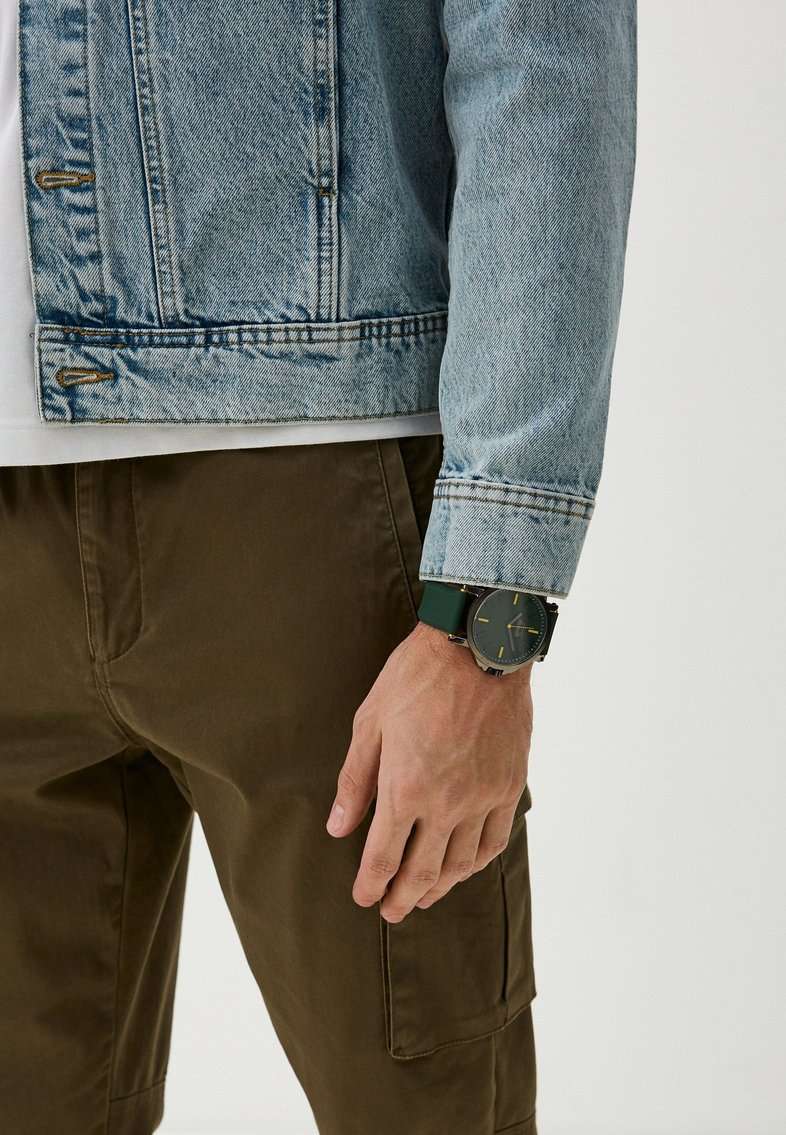 Стильные наручные часы Slazenger SL.09.2220.1.07 сочетают современный дизайн и практичность для повседневного использования. Крупный корпус диаметром 48 мм выполнен из прочного металла IP-покрытиемIP-покрытиеМетод ионного напыления. Демонстрирует повышенную устойчивость к истиранию, окислению и химическим веществам. Под воздействием высокого давления и температуры около 1500°C молекулы металла надёжно соединяются с частицами корпуса часов., а минеральное стеклоМинеральное стеклоМинеральное стекло представляет собой искусственно выращенный минерал кварца. Такое стекло отличается особой устойчивостью к повреждениям и царапинам. Уступает по некоторым качествам сапфировому стеклу. обеспечивает дополнительную защиту темно-зеленого циферблата от царапин. Модель оснащена надежным кварцевым механизмом и имеет водозащиту класса WR 50, что позволяет не снимать часы при мытье рук или во время дождя. Зеленый ремешок из мягкого и долговечного силикона удобно сидит на запястье и фиксируется классической застежкой. Часы весят всего 86 грамм, что делает их комфортными для ежедневной носки. Заводная головка оснащена защитой, что предотвращает случайное повреждение. Эта модель станет надежным и стильным аксессуаром для тех, кто ценит качество и функциональность.