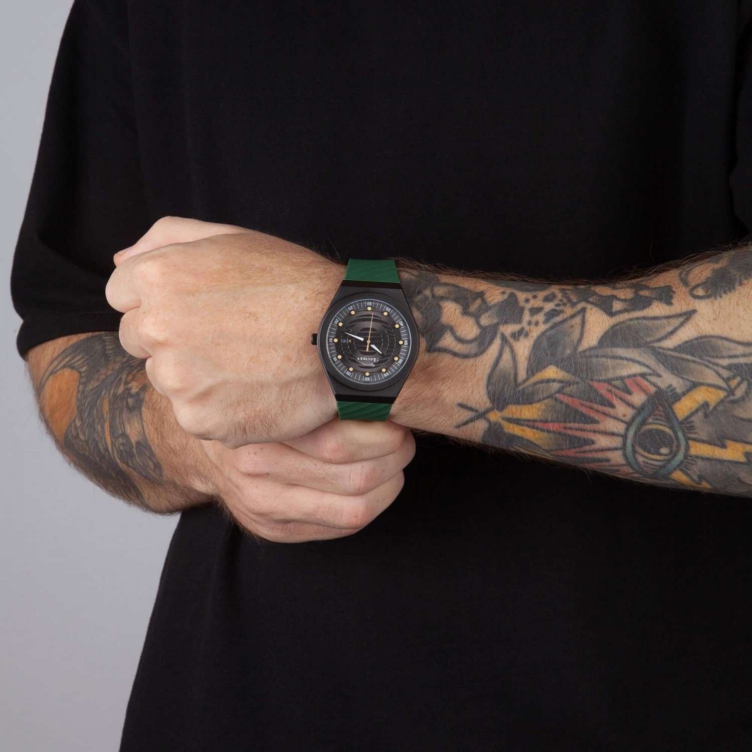 Стильные наручные часы Slazenger SL.09.2221.1.06 сочетают современный дизайн и надежность, идеально подходя для активного образа жизни. Корпус диаметром 44 мм изготовлен из прочного металла с IP-покрытиемIP-покрытиеМетод ионного напыления. Демонстрирует повышенную устойчивость к истиранию, окислению и химическим веществам. Под воздействием высокого давления и температуры около 1500°C молекулы металла надёжно соединяются с частицами корпуса часов. и дополнен устойчивым к царапинам минеральным стекломМинеральное стеклоМинеральное стекло представляет собой искусственно выращенный минерал кварца. Такое стекло отличается особой устойчивостью к повреждениям и царапинам. Уступает по некоторым качествам сапфировому стеклу.. Зеленый ремешок из мягкого силикона удобно сидит на запястье и фиксируется классической застежкой. Кварцевый механизм обеспечивает точность хода, а водозащита уровня WR 50 позволяет не беспокоиться о воздействии влаги в повседневных ситуациях. Модель оснащена функцией отображения даты в отдельном окошке. Стрелки снабжены люминесцентным покрытиемЛюминесцентное покрытиеПозволяет считывать показания времени в темноте. Производители наносят на стрелки, часовые индексы, безель или поверхность циферблата светонакопительный состав, дающий холодное свечение., что позволяет легко считывать время в темноте. Часы весят всего 82 грамма, что делает их легкими и комфортными для ежедневного ношения Эти часы станут отличным выбором для тех, кто ценит качество, практичность и современный стиль.