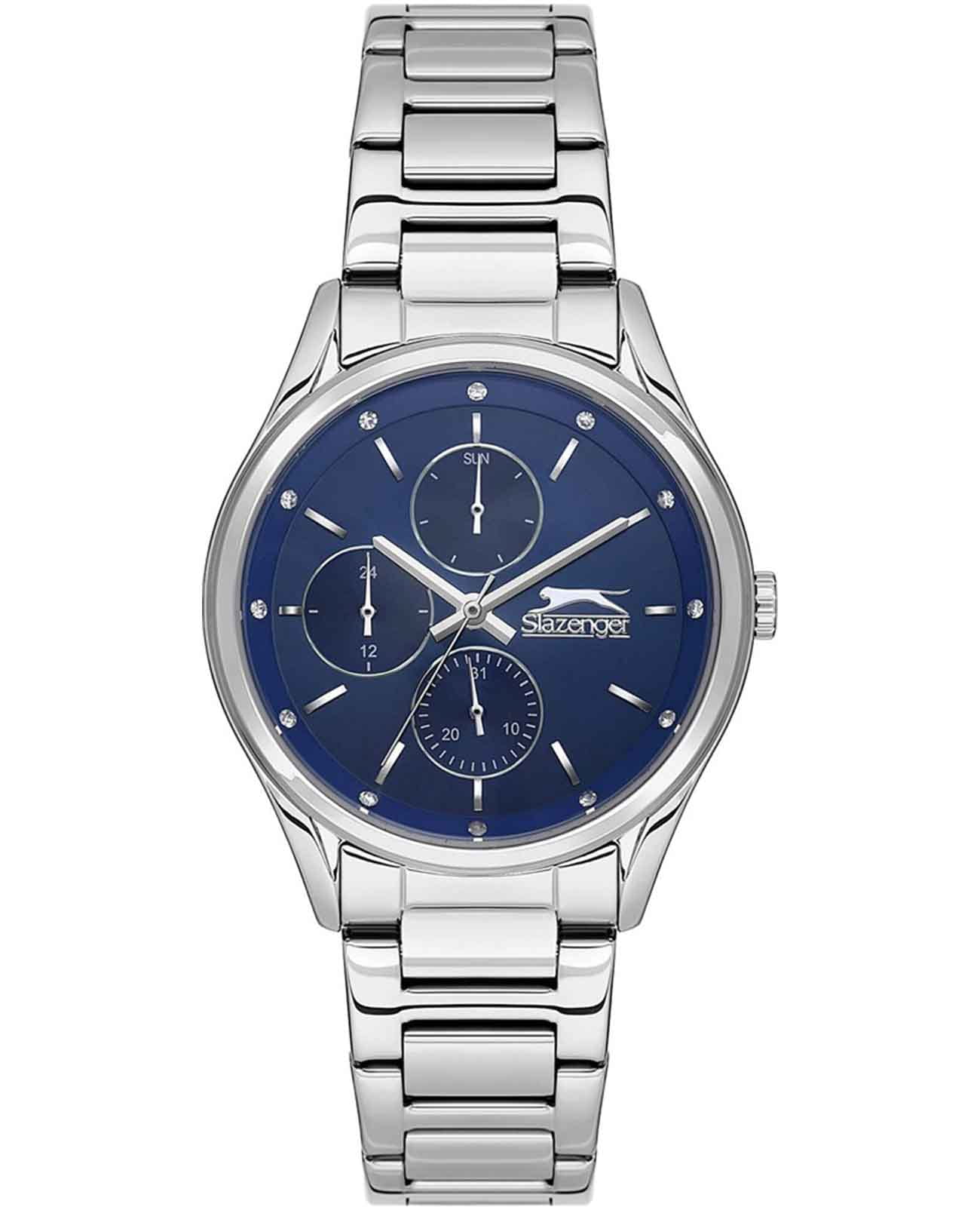 Часы Slazenger SL.09.2229.4.04 — это стильная и элегантная модель, созданная для современных женщин, ценящих изысканный дизайн и функциональность. Корпус и браслет выполнены из прочного металла серебристого цвета, что придает аксессуару особую утонченность. Синий циферблат украшен мерцающими кристаллами, а также оснащён дополнительными малыми циферблатами, которые отображают дату, день недели и время в 24-часовом формате. Минеральное стеклоМинеральное стеклоМинеральное стекло представляет собой искусственно выращенный минерал кварца. Такое стекло отличается особой устойчивостью к повреждениям и царапинам. Уступает по некоторым качествам сапфировому стеклу. надежно защищает часы от царапин, а водозащита уровня WR 30 позволяет не беспокоиться о случайном попадании влаги. Металлический браслет снабжён удобной раскладной застёжкойРаскладная застёжкаТакой тип застёжки используется только на браслетах из металла. Она никогда не раскрывается полностью, происходит разделение на 2 и более частей. Раскладывающая застёжка снизит вероятность потери часов к минимуму.. Диаметр корпуса составляет 36 мм, толщина — 9 мм, а вес — 82 грамма, что обеспечивает комфортное ношение в течение всего дня. Часы оснащены кварцевым механизмом.
