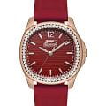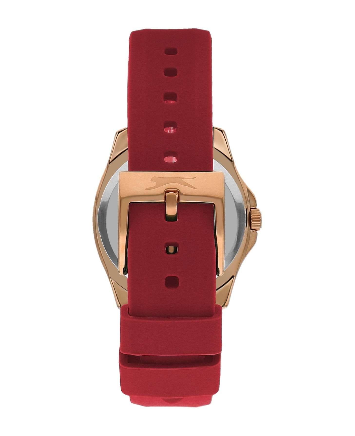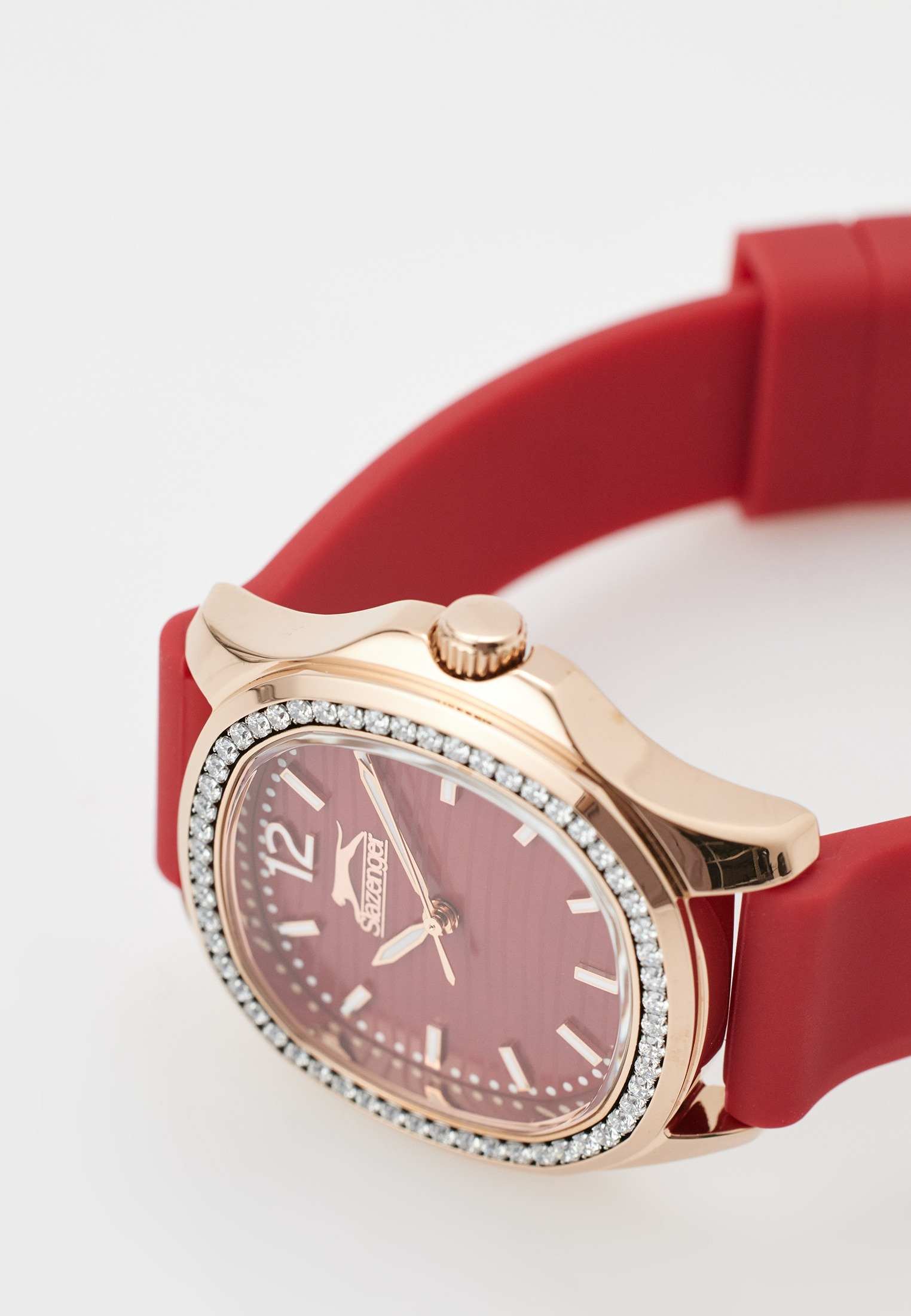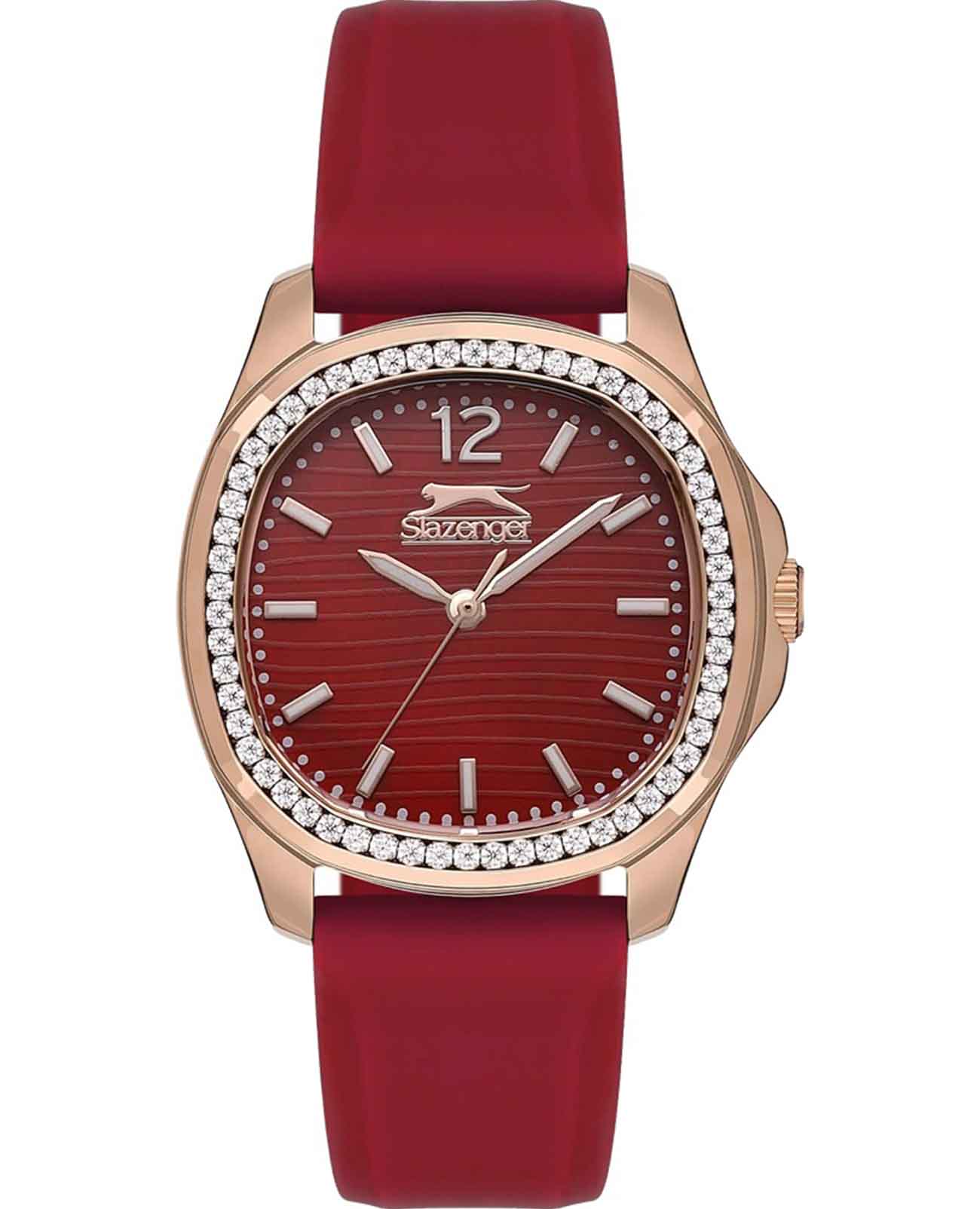 Часы Slazenger SL.09.2239.3.05 – это изысканный аксессуар, который станет стильным акцентом любого образа. Модель оснащена надежным кварцевым механизмом. Корпус из прочного металла с розово-золотистым  IP-покрытиемIP-покрытиеМетод ионного напыления. Демонстрирует повышенную устойчивость к истиранию, окислению и химическим веществам. Под воздействием высокого давления и температуры около 1500°C молекулы металла надёжно соединяются с частицами корпуса часов. размером 34х34 мм украшен россыпью сверкающих фианитов по безелюБезельВнешний ободок, закрепляющий стекло. В спортивных часах так называется поворотное кольцо с делениями на циферблате, выполняет роль таймера – замеряет отрезки времени на шкале. Неподвижный безель – элемент декора. Однонаправленно вращающийся безель на дайверских часах позволяет фиксировать моменты погружения и выныривания на поверхность., что придает часам особое сияние и элегантность. Красный циферблат с логотипом бренда защищен стойким к царапинам минеральным стекломМинеральное стеклоМинеральное стекло представляет собой искусственно выращенный минерал кварца. Такое стекло отличается особой устойчивостью к повреждениям и царапинам. Уступает по некоторым качествам сапфировому стеклу.. Четкие часовые метки в виде лаконичных штрихов и крупная арабская цифра 12 обеспечивают удобство чтения времени. Заводная головка с рифлением дополнена защитой для повышения долговечности. Резиновый красный ремешок шириной 18 мм надежно фиксируется на запястье с помощью классической застежки. Для удобства использования в темное время суток предусмотрено люминесцентное покрытиеЛюминесцентное покрытиеПозволяет считывать показания времени в темноте. Производители наносят на стрелки, часовые индексы, безель или поверхность циферблата светонакопительный состав, дающий холодное свечение. стрелок. Водозащита 30WR позволяет не беспокоиться о случайных брызгах. Вес изделия составляет 43 грамма, что делает часы комфортными для ежедневного ношения. Эти часы идеально подойдут для тех, кто ценит гармонию стиля, качества и функциональности.