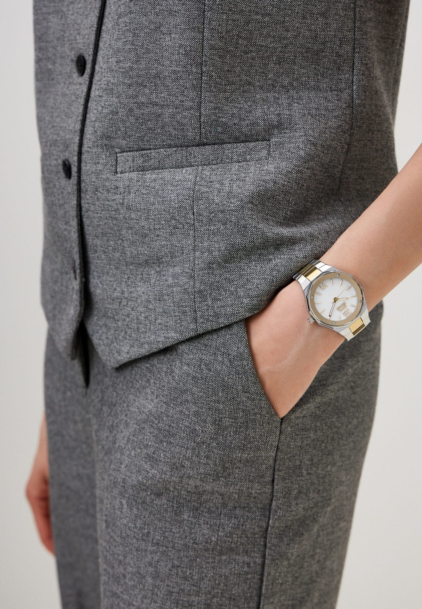 Часы Slazenger SL.09.2258.3.03 — это изысканный аксессуар, который гармонично подчеркнёт ваш индивидуальный стиль. Корпус и браслет выполнены из инновационного суперметалла — сплава на основе меди с пониженным содержанием цинка и никеля, обладающего специальным защитным покрытием, а циферблат украшен 4 кристаллами. Надёжный кварцевый механизм обеспечивает точный ход, а прочное минеральное стеклоМинеральное стеклоМинеральное стекло представляет собой искусственно выращенный минерал кварца. Такое стекло отличается особой устойчивостью к повреждениям и царапинам. Уступает по некоторым качествам сапфировому стеклу. устойчиво к царапинам и защищает перламутровый циферблат от внешних воздействий. Диаметр корпуса составляет 38 мм, толщина — всего 8 мм, что делает модель элегантной и удобной для ежедневного ношения. Водонепроницаемость до 3 бар позволяет не беспокоиться о случайных брызгах или каплях дождя. Стрелки с люминесцентным покрытиемЛюминесцентное покрытиеПозволяет считывать показания времени в темноте. Производители наносят на стрелки, часовые индексы, безель или поверхность циферблата светонакопительный состав, дающий холодное свечение. удобно подсвечиваются в темноте после зарядки на свету. Стальной браслет с частичным золотистым IP-покрытиемIP-покрытиеМетод ионного напыления. Демонстрирует повышенную устойчивость к истиранию, окислению и химическим веществам. Под воздействием высокого давления и температуры около 1500°C молекулы металла надёжно соединяются с частицами корпуса часов. и раскладной застёжкойРаскладная застёжкаТакой тип застёжки используется только на браслетах из металла. Она никогда не раскрывается полностью, происходит разделение на 2 и более частей. Раскладывающая застёжка снизит вероятность потери часов к минимуму. обеспечивает комфортную посадку. Часы станут отличным выбором как для повседневной жизни, так и для особых случаев, а также послужат прекрасным подарком на любой праздник.