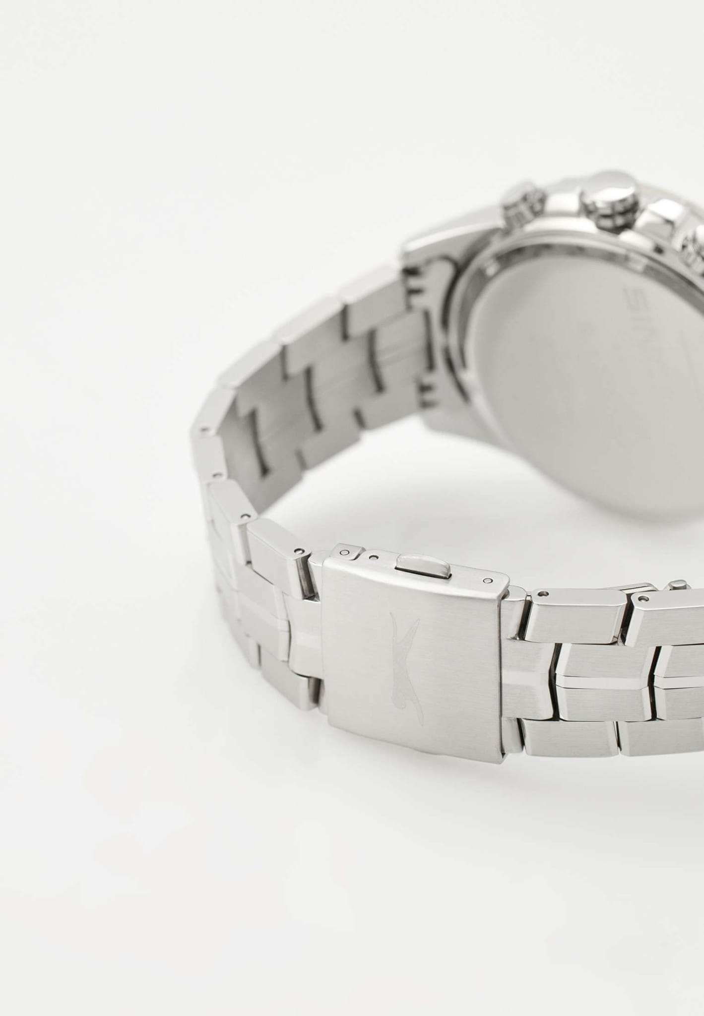 Часы Slazenger SL.09.2259.2.04 — это стильный и многофункциональный аксессуар, который станет достойным дополнением к вашему образу. Корпус и браслет модели выполнены из современного суперметалла — прочного сплава на основе меди с пониженным содержанием цинка и никеля, а также инновационным покрытием, что обеспечивает долговечность и привлекательный внешний вид. На безельБезельВнешний ободок, закрепляющий стекло. В спортивных часах так называется поворотное кольцо с делениями на циферблате, выполняет роль таймера – замеряет отрезки времени на шкале. Неподвижный безель – элемент декора. Однонаправленно вращающийся безель на дайверских часах позволяет фиксировать моменты погружения и выныривания на поверхность. нанесено золотистое IP-покрытиеIP-покрытиеМетод ионного напыления. Демонстрирует повышенную устойчивость к истиранию, окислению и химическим веществам. Под воздействием высокого давления и температуры около 1500°C молекулы металла надёжно соединяются с частицами корпуса часов., что придает аксессуару утончённый и универсальный внешний вид. Под минеральным стекломМинеральное стеклоМинеральное стекло представляет собой искусственно выращенный минерал кварца. Такое стекло отличается особой устойчивостью к повреждениям и царапинам. Уступает по некоторым качествам сапфировому стеклу. находится зеленый циферблат с дополнительными функциями: вынесенный 24-часовой индикатор, указатель дня недели, окно даты в положении между 4 и 5 часами, а также функция GMTGMTОтображение времени второго часового пояса.Такая функция особенно актуальна для путешественников и бизнесменов,которые общаются с людьми из разных стран,теперь вы всегда будете знать,какой час у вашего партнёра или близкого человека. для отслеживания второго часового поясаВторой часовой поясФункция, позволяющая отображать время двух часовых поясов одновременно. — всё это делает модель особенно удобной при активном образе жизни и путешествиях. Кварцевый механизм гарантирует высокую точность хода. Диаметр корпуса составляет 46 мм, толщина — 12 мм, что подчёркивает современный характер часов. Стрелки с люминесцентным покрытиемЛюминесцентное покрытиеПозволяет считывать показания времени в темноте. Производители наносят на стрелки, часовые индексы, безель или поверхность циферблата светонакопительный состав, дающий холодное свечение. удобно подсвечиваются в темноте после зарядки на свету. Стальной браслет с раскладной застёжкойРаскладная застёжкаТакой тип застёжки используется только на браслетах из металла. Она никогда не раскрывается полностью, происходит разделение на 2 и более частей. Раскладывающая застёжка снизит вероятность потери часов к минимуму. обеспечивает комфортную посадку. Водозащита до 5 атмосфер позволяет не опасаться случайных брызг или дождя. Часы идеально подходят для ежедневного ношения и особых случаев, а также станут отличным подарком.