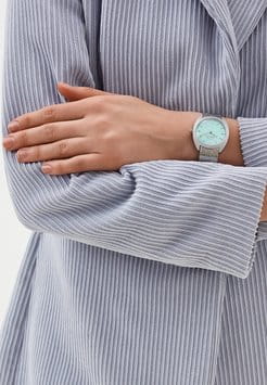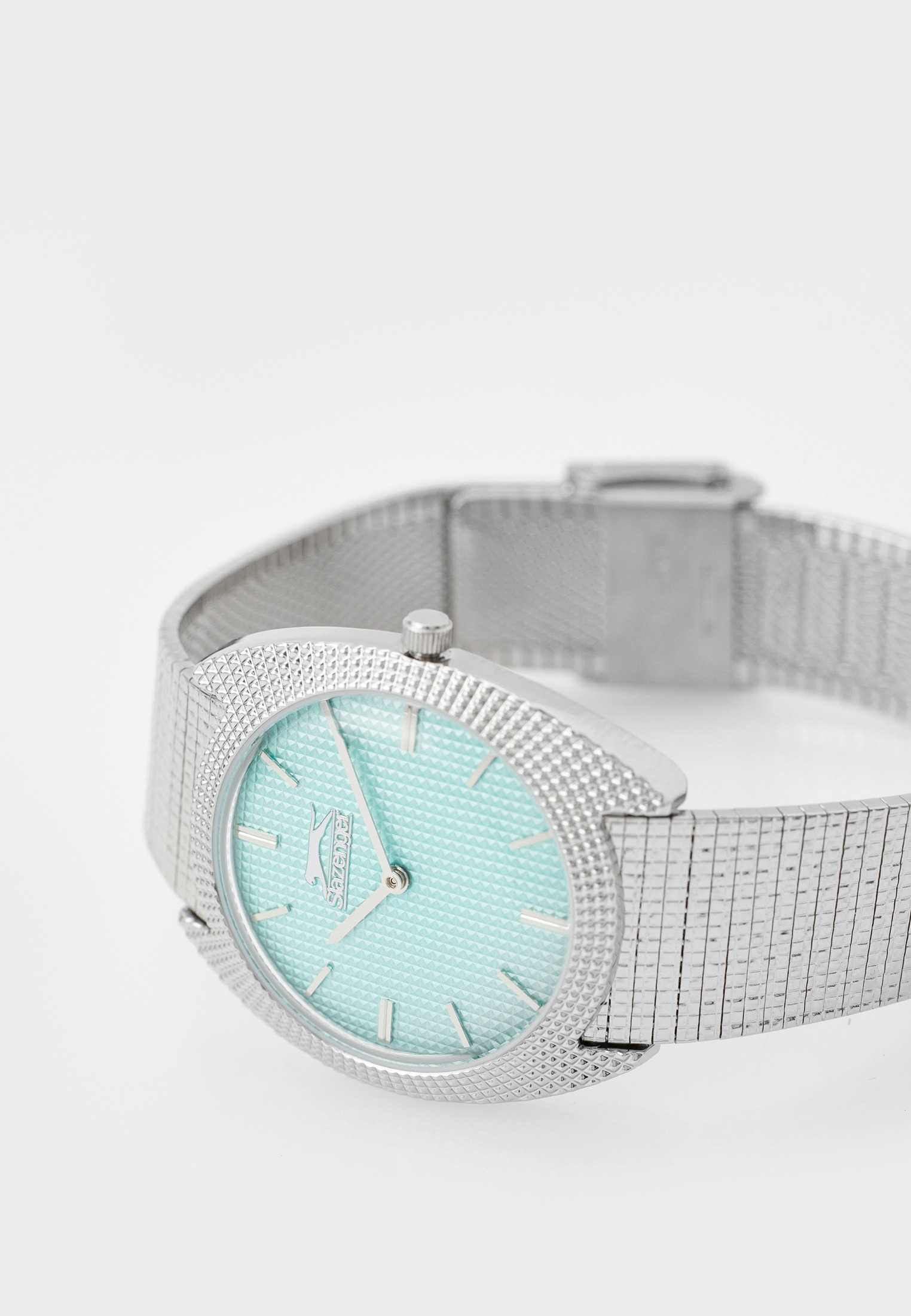 Часы Slazenger SL.09.2261.3.04 — это утонченное сочетание современного дизайна и классической элегантности. Изделие оснащено надежным кварцевым механизмом, который обеспечивает точность хода и простоту эксплуатации. Корпус из суперметалла гармонично сочетается с металлическим браслетом аналогичного оттенка и покрытия, подчеркивая изысканность аксессуара и его актуальность в модных тенденциях. Бирюзовый циферблат украшен изысканным гильоше Clous de Paris и дополнен лаконичными метками в виде штрихов, а также фирменным логотипом бренда. Минеральное стеклоМинеральное стеклоМинеральное стекло представляет собой искусственно выращенный минерал кварца. Такое стекло отличается особой устойчивостью к повреждениям и царапинам. Уступает по некоторым качествам сапфировому стеклу. надежно защищает циферблат от случайных царапин. Диаметр корпуса составляет 34 мм, толщина — 8 мм, ширина браслета — 18 мм, а вес часов — всего 54 г, благодаря чему аксессуар удобно сидит на запястье. Стальной браслет c раскладным замкомРаскладной замокДанный вариант застежки используется только на часах с металлическим браслетом. Отличительная особенность такого крепления в том, что длина браслета становится универсальной и вы можете самостоятельно отрегулировать нужный вам размер – застежка просто двигается по браслету часов. удобно фиксируется на запястье и подчёркивает современный характер часов. Водозащита 30WR позволяет не беспокоиться о случайных брызгах. Модель отличается отсутствием секундной стрелки и оснащена рифленой заводной головкой для легкой корректировки времени. Эти часы станут стильным завершением любого образа, подчеркивая индивидуальность и чувство вкуса обладателя.