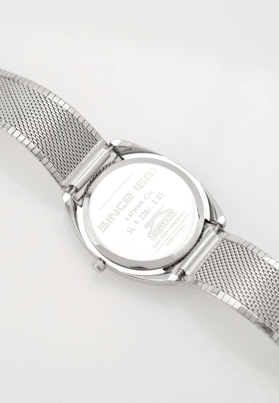 Часы Slazenger SL.09.2261.3.05 — это утонченное сочетание современного дизайна и классической элегантности. Изделие оснащено надежным кварцевым механизмом, который обеспечивает точность хода и простоту эксплуатации. Корпус из суперметалла гармонично сочетается с металлическим браслетом аналогичного оттенка и покрытия, подчеркивая изысканность аксессуара и его актуальность в модных тенденциях. Розовый циферблат украшен изысканным гильоше Clous de Paris и дополнен лаконичными метками в виде штрихов, а также фирменным логотипом бренда. Минеральное стеклоМинеральное стеклоМинеральное стекло представляет собой искусственно выращенный минерал кварца. Такое стекло отличается особой устойчивостью к повреждениям и царапинам. Уступает по некоторым качествам сапфировому стеклу. надежно защищает циферблат от случайных царапин. Диаметр корпуса составляет 34 мм, толщина — 8 мм, ширина браслета — 18 мм, а вес часов — всего 54 г, благодаря чему аксессуар удобно сидит на запястье. Стальной браслет c раскладным замкомРаскладной замокДанный вариант застежки используется только на часах с металлическим браслетом. Отличительная особенность такого крепления в том, что длина браслета становится универсальной и вы можете самостоятельно отрегулировать нужный вам размер – застежка просто двигается по браслету часов. удобно фиксируется на запястье и подчёркивает современный характер часов. Водозащита 30WR позволяет не беспокоиться о случайных брызгах. Модель отличается отсутствием секундной стрелки и оснащена рифленой заводной головкой для легкой корректировки времени. Эти часы станут стильным завершением любого образа, подчеркивая индивидуальность и чувство вкуса обладателя.