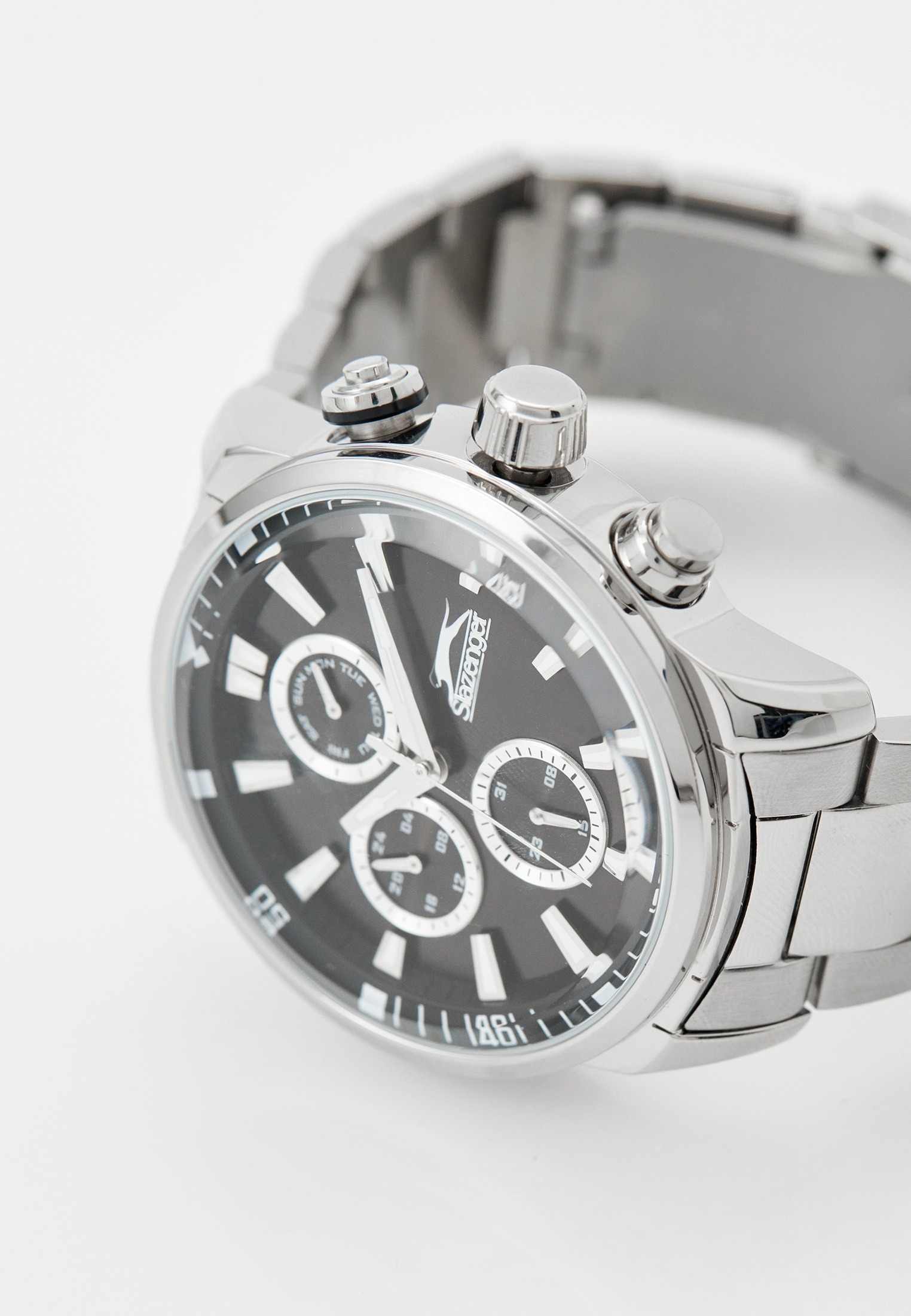 Часы Slazenger SL.09.2272.2.01 – это стильный аксессуар, сочетающий в себе современный дизайн и продуманную функциональность. Модель оснащена точным кварцевым механизмом, который гарантирует стабильную работу и легкость в использовании. Корпус и браслет выполнены из суперметалла — инновационного сплава на основе меди с пониженным содержанием цинка и никеля, обладающего высокой прочностью и устойчивостью к износу благодаря особой технологии покрытия. Элегантный чёрный циферблат защищён надёжным минеральным стекломМинеральное стеклоМинеральное стекло представляет собой искусственно выращенный минерал кварца. Такое стекло отличается особой устойчивостью к повреждениям и царапинам. Уступает по некоторым качествам сапфировому стеклу., устойчивым к царапинам и повреждениям. На циферблате размещены отдельные индикаторы: 24-часовой указатель времени, а также дополнительные циферблаты для отображения даты и дня недели, что делает модель максимально информативной и удобной в повседневном использовании. Водозащита 5 АТМ (5 бар) надёжно защищает механизм от брызг и дождя, а диаметр корпуса 45 мм и толщина 13 мм обеспечивают солидный внешний вид и комфортную посадку на запястье. Стальной браслет с раскладной застёжкойРаскладная застёжкаТакой тип застёжки используется только на браслетах из металла. Она никогда не раскрывается полностью, происходит разделение на 2 и более частей. Раскладывающая застёжка снизит вероятность потери часов к минимуму. обеспечивает комфортную посадку. Стрелки с люминесцентным покрытиемЛюминесцентное покрытиеПозволяет считывать показания времени в темноте. Производители наносят на стрелки, часовые индексы, безель или поверхность циферблата светонакопительный состав, дающий холодное свечение. удобно подсвечиваются в темноте после зарядки на свету. Часы подойдут как для ежедневного ношения, так и для особых случаев, а универсальный дизайн подчеркнёт индивидуальность и вкус владельца.