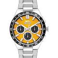 Часы Slazenger SL.09.2285.2.02 — это стильное решение для тех, кто ценит сочетание выразительного дизайна и функциональности. Модель оснащена надежным кварцевым механизмом, который заключен в прочный корпус диаметром 45 мм и толщиной 13 мм, выполненный из суперметалла — современного сплава на основе меди с пониженным содержанием цинка и никеля, обладающего высокой прочностью и устойчивостью к износу, а на безельБезельВнешний ободок, закрепляющий стекло. В спортивных часах так называется поворотное кольцо с делениями на циферблате, выполняет роль таймера – замеряет отрезки времени на шкале. Неподвижный безель – элемент декора. Однонаправленно вращающийся безель на дайверских часах позволяет фиксировать моменты погружения и выныривания на поверхность. нанесено черное IP-покрытиеIP-покрытиеМетод ионного напыления. Демонстрирует повышенную устойчивость к истиранию, окислению и химическим веществам. Под воздействием высокого давления и температуры около 1500°C молекулы металла надёжно соединяются с частицами корпуса часов. и секундная шкала. Минеральное стеклоМинеральное стеклоМинеральное стекло представляет собой искусственно выращенный минерал кварца. Такое стекло отличается особой устойчивостью к повреждениям и царапинам. Уступает по некоторым качествам сапфировому стеклу. защищает желтый циферблат от царапин и повреждений. Часы оснащены дополнительными циферблатами для отображения 24-часового времени, даты и дня недели, что делает использование еще более удобным. Браслет также выполнен из суперметалла с раскладной застёжкойРаскладная застёжкаТакой тип застёжки используется только на браслетах из металла. Она никогда не раскрывается полностью, происходит разделение на 2 и более частей. Раскладывающая застёжка снизит вероятность потери часов к минимуму. и гармонично дополняет общий облик аксессуара. Циферблат оснащён люминесцентным покрытиемЛюминесцентное покрытиеПозволяет считывать показания времени в темноте. Производители наносят на стрелки, часовые индексы, безель или поверхность циферблата светонакопительный состав, дающий холодное свечение. стрелок и меток, что позволяет легко определять время даже в условиях плохой освещенности. Класс водозащиты 5 АТМ позволяет не бояться случайных брызг и дождя, а гарантия 12 месяцев подтверждает высокое качество изделия.