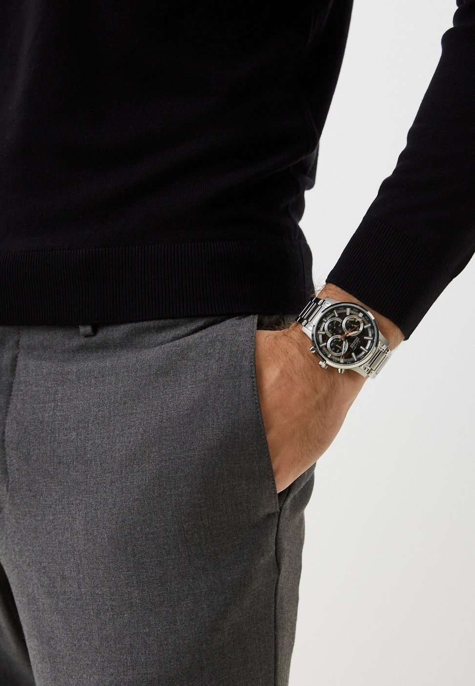 Мужские наручные часы Slazenger SL.09.2294.2.01 сочетают стильный современный дизайн и высокую функциональность. Корпус из прочного металла диаметром 44 мм и толщиной 13 мм защищён минеральным стекломМинеральное стеклоМинеральное стекло представляет собой искусственно выращенный минерал кварца. Такое стекло отличается особой устойчивостью к повреждениям и царапинам. Уступает по некоторым качествам сапфировому стеклу., устойчивым к царапинам. Серебристый металлический браслет шириной 22 мм оснащён надёжной раскладной застёжкойРаскладная застёжкаТакой тип застёжки используется только на браслетах из металла. Она никогда не раскрывается полностью, происходит разделение на 2 и более частей. Раскладывающая застёжка снизит вероятность потери часов к минимуму., обеспечивающей комфортное ношение. Кварцевый механизм гарантирует точность хода, а водозащита уровня WR 50 позволяет не снимать часы при мытье рук или во время дождя. Модель оснащена люминесцентным покрытиемЛюминесцентное покрытиеПозволяет считывать показания времени в темноте. Производители наносят на стрелки, часовые индексы, безель или поверхность циферблата светонакопительный состав, дающий холодное свечение. стрелок и меток, что облегчает считывание времени в темноте. На малых циферблатах отображаются дата, день недели и текущее время в 24-часовом формате, что делает модель особенно удобной для повседневного использования. Циферблат часов насыщенного черного цвета. Заводная головка с защитой и завинчивающаяся задняя крышка обеспечивают дополнительную надежность конструкции. Вес часов составляет 123 грамма.