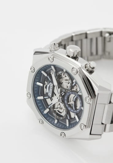 Мужские кварцевые часы Slazenger SL.09.2318.2.04 - это выразительный и функциональный аксессуар, сочетающий стиль, технологичность и насыщенную комплектацию. Корпус и браслет выполнены из суперметалла. Циферблат защищён минеральным стекломМинеральное стеклоМинеральное стекло представляет собой искусственно выращенный минерал кварца. Такое стекло отличается особой устойчивостью к повреждениям и царапинам. Уступает по некоторым качествам сапфировому стеклу. и частично скелетонизирован, что позволяет наблюдать за работой механизма, и дополнен вынесенными малыми циферблатами для индикации дня недели, даты и времени в 24-часовом формате. Стрелки и метки оснащены люминесцентным покрытиемЛюминесцентное покрытиеПозволяет считывать показания времени в темноте. Производители наносят на стрелки, часовые индексы, безель или поверхность циферблата светонакопительный состав, дающий холодное свечение., обеспечивающим хорошую читаемость в темноте. Браслет из суперметалла фиксируется на раскладной застёжкеРаскладная застёжкаТакой тип застёжки используется только на браслетах из металла. Она никогда не раскрывается полностью, происходит разделение на 2 и более частей. Раскладывающая застёжка снизит вероятность потери часов к минимуму., обеспечивая удобство и надёжность ношения. Водонепроницаемость 50 м позволяет использовать часы в повседневных условиях, защищая от случайных брызг и капель дождя. Модель подчёркивает индивидуальность владельца и идеально подходит как для повседневного, так и для делового образа.