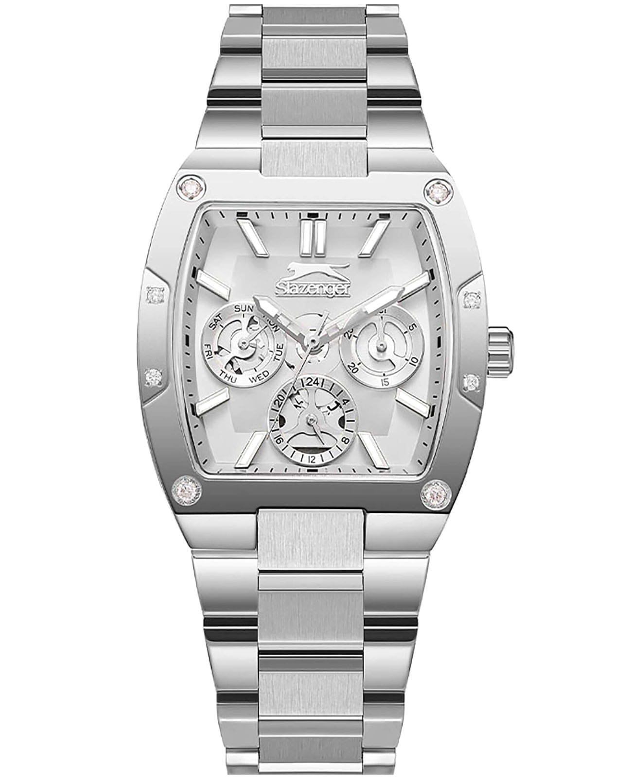Женские кварцевые часы Slazenger SL.09.2357.4.01 – это сочетание элегантности, современного стиля и надёжности. Изящный корпус из суперметалла серебристого цвета, размером 32 мм х 33 мм и толщиной 10 мм, подчёркивает утончённость модели и делает их идеальным аксессуаром для любой ситуации – будь то деловая встреча, романтический вечер или повседневные выходы. Циферблат надёжно защищён минеральным стекломМинеральное стеклоМинеральное стекло представляет собой искусственно выращенный минерал кварца. Такое стекло отличается особой устойчивостью к повреждениям и царапинам. Уступает по некоторым качествам сапфировому стеклу., которое устойчиво к механическим повреждениям и сохраняет кристальную прозрачность. Браслет из суперметалла удобно облегает запястье и фиксируется с помощью раскладной застёжкиРаскладная застёжкаТакой тип застёжки используется только на браслетах из металла. Она никогда не раскрывается полностью, происходит разделение на 2 и более частей. Раскладывающая застёжка снизит вероятность потери часов к минимуму., обеспечивая надёжность и комфорт в повседневном ношении. Утончённый стиль, внимание к деталям и практичность делают эту модель идеальным выбором для современных женщин, ценящих эстетику и функциональность. Стрелки и метки покрыты люминесцентным покрытиемЛюминесцентное покрытиеПозволяет считывать показания времени в темноте. Производители наносят на стрелки, часовые индексы, безель или поверхность циферблата светонакопительный состав, дающий холодное свечение., обеспечивающим отличную читаемость в темноте. Вынесенный циферблат с 24-х часовым указателем времени. Водозащита до 30 метров позволит защитить корпус от случайных брызг или капель дождя.