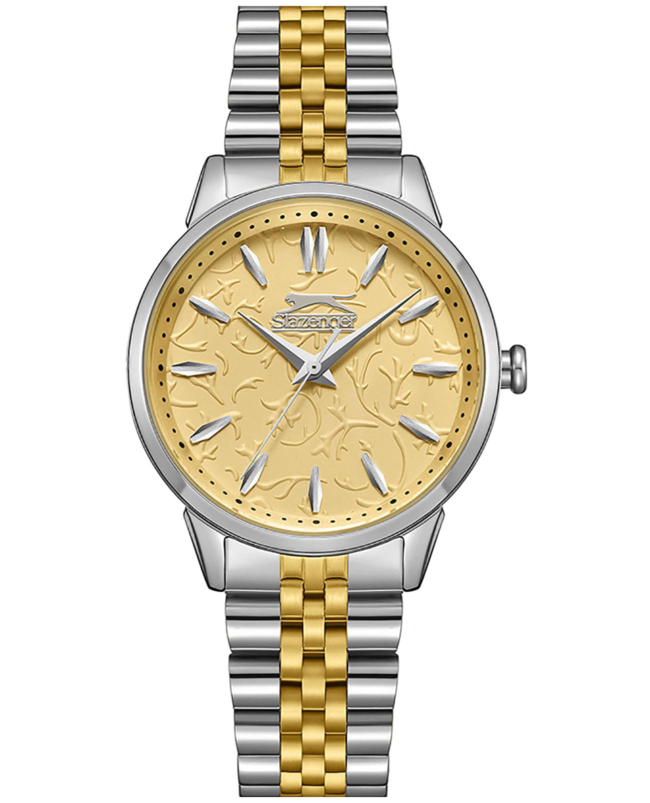 Женские кварцевые часы Slazenger SL.09.2373.3.06 – это сочетание элегантности, современного стиля и надёжности. Изящный корпус из суперметалла серебристого цвета, диаметром 34 мм и толщиной 9 мм, подчёркивает утончённость модели и делает их идеальным аксессуаром для любой ситуации – будь то деловая встреча, романтический вечер или повседневные выходы. Циферблат надёжно защищён минеральным стекломМинеральное стеклоМинеральное стекло представляет собой искусственно выращенный минерал кварца. Такое стекло отличается особой устойчивостью к повреждениям и царапинам. Уступает по некоторым качествам сапфировому стеклу., которое устойчиво к механическим повреждениям и сохраняет кристальную прозрачность. Браслет из суперметалла с частичным IP-покрытиемIP-покрытиеМетод ионного напыления. Демонстрирует повышенную устойчивость к истиранию, окислению и химическим веществам. Под воздействием высокого давления и температуры около 1500°C молекулы металла надёжно соединяются с частицами корпуса часов. удобно облегает запястье и фиксируется с помощью раскладной застёжкиРаскладная застёжкаТакой тип застёжки используется только на браслетах из металла. Она никогда не раскрывается полностью, происходит разделение на 2 и более частей. Раскладывающая застёжка снизит вероятность потери часов к минимуму., обеспечивая надёжность и комфорт в повседневном ношении. Утончённый стиль, внимание к деталям и практичность делают эту модель идеальным выбором для современных женщин, ценящих эстетику и функциональность. Водозащита до 30 метров позволит защитить корпус от случайных брызг или капель дождя.