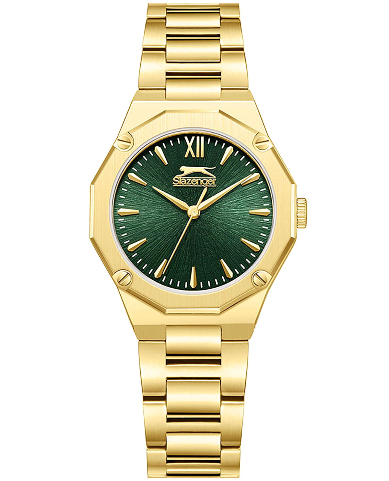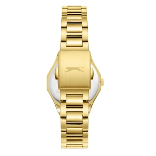 Женские кварцевые часы Slazenger SL.09.2374.3.04 – это сочетание элегантности, современного стиля и надёжности. Изящный корпус из суперметалла с IP-покрытиемIP-покрытиеМетод ионного напыления. Демонстрирует повышенную устойчивость к истиранию, окислению и химическим веществам. Под воздействием высокого давления и температуры около 1500°C молекулы металла надёжно соединяются с частицами корпуса часов. золотистого цвета, диаметром 30 мм и толщиной 7 мм, подчёркивает утончённость модели и делает их идеальным аксессуаром для любой ситуации – будь то деловая встреча, романтический вечер или повседневные выходы. Циферблат надёжно защищён минеральным стекломМинеральное стеклоМинеральное стекло представляет собой искусственно выращенный минерал кварца. Такое стекло отличается особой устойчивостью к повреждениям и царапинам. Уступает по некоторым качествам сапфировому стеклу., которое устойчиво к механическим повреждениям и сохраняет кристальную прозрачность. Браслет из суперметалла с IP-покрытиемIP-покрытиеМетод ионного напыления. Демонстрирует повышенную устойчивость к истиранию, окислению и химическим веществам. Под воздействием высокого давления и температуры около 1500°C молекулы металла надёжно соединяются с частицами корпуса часов. удобно облегает запястье и фиксируется с помощью раскладной застёжкиРаскладная застёжкаТакой тип застёжки используется только на браслетах из металла. Она никогда не раскрывается полностью, происходит разделение на 2 и более частей. Раскладывающая застёжка снизит вероятность потери часов к минимуму., обеспечивая надёжность и комфорт в повседневном ношении. Утончённый стиль, внимание к деталям и практичность делают эту модель идеальным выбором для современных женщин, ценящих эстетику и функциональность. Водозащита до 30 метров позволит защитить корпус от случайных брызг или капель дождя.