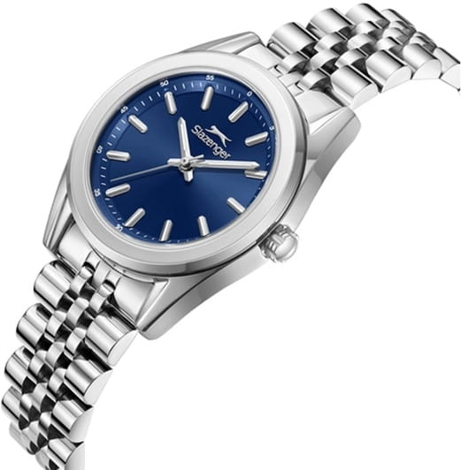 Женские кварцевые часы Slazenger — это элегантный аксессуар. Корпус диаметром 32 мм и толщиной 10 мм выполнен из суперметалла. Циферблат синего цвета оформлен индексами и стрелками. Циферблат защищён минеральным стекломМинеральное стеклоМинеральное стекло представляет собой искусственно выращенный минерал кварца. Такое стекло отличается особой устойчивостью к повреждениям и царапинам. Уступает по некоторым качествам сапфировому стеклу.. Механизм — кварцевый. Стрелки и метки с люминесцентным покрытиемЛюминесцентное покрытиеПозволяет считывать показания времени в темноте. Производители наносят на стрелки, часовые индексы, безель или поверхность циферблата светонакопительный состав, дающий холодное свечение., обеспечивающим хорошую читаемость в темноте. Часы оснащены браслетом из суперметалла с раскладной застёжкойРаскладная застёжкаТакой тип застёжки используется только на браслетах из металла. Она никогда не раскрывается полностью, происходит разделение на 2 и более частей. Раскладывающая застёжка снизит вероятность потери часов к минимуму.. Водонепроницаемость 50 м позволяет использовать часы в повседневных условиях. Гарантия — 12 месяцев. Идеальный выбор для тех, кто ценит стиль и качество.