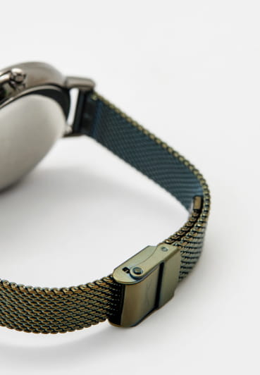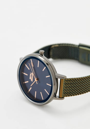 Женские кварцевые часы Slazenger — это элегантный аксессуар с браслетом миланского плетения. Корпус диаметром 38 мм и толщиной 9 мм выполнен из суперметалла с IP-покрытиемIP-покрытиеМетод ионного напыления. Демонстрирует повышенную устойчивость к истиранию, окислению и химическим веществам. Под воздействием высокого давления и температуры около 1500°C молекулы металла надёжно соединяются с частицами корпуса часов.. Циферблат синего цвета оформлен индексами и стрелками. Циферблат защищён минеральным стекломМинеральное стеклоМинеральное стекло представляет собой искусственно выращенный минерал кварца. Такое стекло отличается особой устойчивостью к повреждениям и царапинам. Уступает по некоторым качествам сапфировому стеклу.. Механизм — кварцевый калибр Miyota 2035. Часы оснащены браслетом из суперметалла миланского плетения с раскладной застёжкойРаскладная застёжкаТакой тип застёжки используется только на браслетах из металла. Она никогда не раскрывается полностью, происходит разделение на 2 и более частей. Раскладывающая застёжка снизит вероятность потери часов к минимуму.. Водонепроницаемость 30 м позволяет использовать часы в повседневных условиях. Идеальный выбор для тех, кто ценит стиль и качество.
