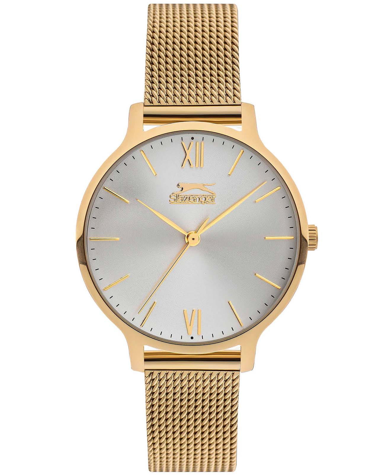 Женские кварцевые часы Slazenger — это элегантный аксессуар. Корпус диаметром 34 мм и толщиной 7 мм выполнен из суперметалла с IP-покрытиемIP-покрытиеМетод ионного напыления. Демонстрирует повышенную устойчивость к истиранию, окислению и химическим веществам. Под воздействием высокого давления и температуры около 1500°C молекулы металла надёжно соединяются с частицами корпуса часов.. Циферблат серебристого цвета оформлен индексами и стрелками. Циферблат защищён минеральным стекломМинеральное стеклоМинеральное стекло представляет собой искусственно выращенный минерал кварца. Такое стекло отличается особой устойчивостью к повреждениям и царапинам. Уступает по некоторым качествам сапфировому стеклу.. Часы оснащены браслетом миланского плетения из суперметалла с IP-покрытиемIP-покрытиеМетод ионного напыления. Демонстрирует повышенную устойчивость к истиранию, окислению и химическим веществам. Под воздействием высокого давления и температуры около 1500°C молекулы металла надёжно соединяются с частицами корпуса часов. на раскладном замкеРаскладная застёжкаТакой тип застёжки используется только на браслетах из металла. Она никогда не раскрывается полностью, происходит разделение на 2 и более частей. Раскладывающая застёжка снизит вероятность потери часов к минимуму.. Водонепроницаемость 30 м позволяет использовать часы в повседневных условиях. Идеальный выбор для тех, кто ценит стиль и качество.