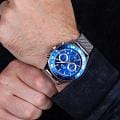 Часы Slazenger SL.09.6528.2.03 — это стильный и надежный хронографХронографФункция позволяет измерять отрезки времени с особой точностью: часы, минуты, секунды. Верным признаком хронографа является наличие на циферблате 3 дополнительных окошек-счётчиков., который подчеркивает индивидуальность своего владельца. Изысканный корпус и браслет выполнены из прочного суперметалла. Циферблат надежно защищен минеральным стекломМинеральное стеклоМинеральное стекло представляет собой искусственно выращенный минерал кварца. Такое стекло отличается особой устойчивостью к повреждениям и царапинам. Уступает по некоторым качествам сапфировому стеклу., устойчивым к царапинам и механическим повреждениям. Модель оснащена кварцевым механизмом, что гарантирует высокую точность хода. На отдельные циферблаты вынесены указатели 24-часового времени, что делает использование часов особенно удобным в повседневной жизни. БезельБезельВнешний ободок, закрепляющий стекло. В спортивных часах так называется поворотное кольцо с делениями на циферблате, выполняет роль таймера – замеряет отрезки времени на шкале. Неподвижный безель – элемент декора. Однонаправленно вращающийся безель на дайверских часах позволяет фиксировать моменты погружения и выныривания на поверхность. с IP-покрытиемIP-покрытиеМетод ионного напыления. Демонстрирует повышенную устойчивость к истиранию, окислению и химическим веществам. Под воздействием высокого давления и температуры около 1500°C молекулы металла надёжно соединяются с частицами корпуса часов. синего цвета. Браслет с раскладным замкомРаскладная застёжкаТакой тип застёжки используется только на браслетах из металла. Она никогда не раскрывается полностью, происходит разделение на 2 и более частей. Раскладывающая застёжка снизит вероятность потери часов к минимуму., обеспечивающей комфортную посадку. Водозащита 5 АТМ позволяет не беспокоиться о случайных брызгах или дожде. Стрелки и метки покрыты люминесцентным покрытиемЛюминесцентное покрытиеПозволяет считывать показания времени в темноте. Производители наносят на стрелки, часовые индексы, безель или поверхность циферблата светонакопительный состав, дающий холодное свечение., обеспечивающим отличную читаемость в темноте. Диаметр корпуса составляет 45 мм, толщина — 12 мм, что обеспечивает комфортное ношение на запястье. Часы станут отличным выбором для повседневного использования или дополнения к деловому образу, а также послужат отличным подарком на любой праздник.