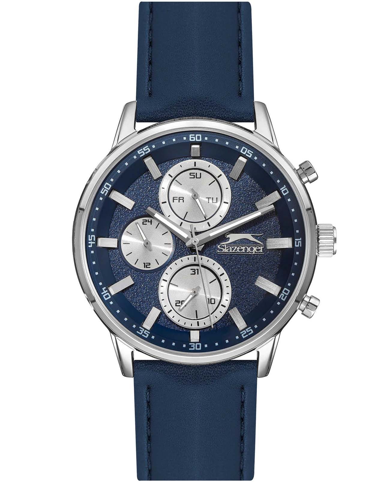 Мужские кварцевые часы Slazenger SL.09.6564.2.01 – это стильный аксессуар, сочетающий в себе современный дизайн и продуманную функциональность. Корпус выполнен из суперметалла серебристого цвета, диаметром 43 мм и толщиной 12 мм, подчёркивает надежность модели и делает их идеальным аксессуаром для любой ситуации – будь то деловая встреча или повседневные выходы. Циферблат надёжно защищён минеральным стекломМинеральное стеклоМинеральное стекло представляет собой искусственно выращенный минерал кварца. Такое стекло отличается особой устойчивостью к повреждениям и царапинам. Уступает по некоторым качествам сапфировому стеклу., которое устойчиво к механическим повреждениям и сохраняет кристальную прозрачность. Кожаный ремень удобно облегает запястье и фиксируется с помощью  стандартной застежки, обеспечивая надёжность и комфорт в повседневном ношении. Часы с люминесцентным покрытиемЛюминесцентное покрытиеПозволяет считывать показания времени в темноте. Производители наносят на стрелки, часовые индексы, безель или поверхность циферблата светонакопительный состав, дающий холодное свечение., обеспечивающим отличную читаемость в темноте. Эти часы станут не просто аксессуаром, а надежным спутником в любой ситуации, подчеркивая ваш безупречный вкус и деловой стиль. Вынесенный циферблат с 24-х часовым указателем времени, датой и днем недели. Водонепроницаемость 50 м позволяет использовать часы в повседневных условиях.