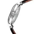 Внутри установлен японский механический механизм Miyota 8215 с автоподзаводом, обеспечивающий высокую точность хода. Запас хода составляет около 40 часов. На циферблате отображается текущее число месяца.