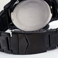 Водозащита 50 метров (5 ATM) защищает часы от брызг и дождя. Браслет из нержавеющей стали с PVD-покрытиемPVDУльтратонкое покрытие наносится в технике вакуумного напыления, сочетает в себе нитрид титана особой прочности со слоем золота или оксида хрома. Несёт в себе декоративную или защитную функцию. и застёжкой раскладной застёжкойРаскладная застёжкаТакой тип застёжки используется только на браслетах из металла. Она никогда не раскрывается полностью, происходит разделение на 2 и более частей. Раскладывающая застёжка снизит вероятность потери часов к минимуму. с системой блокировки обеспечивает комфортное ношение и надёжную фиксацию на запястье.