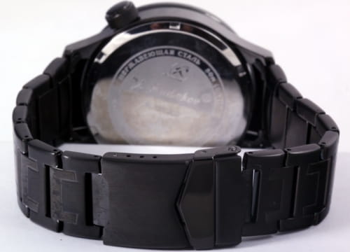 Водозащита 50 метров (5 ATM) защищает часы от брызг и дождя. Браслет из нержавеющей стали с PVD-покрытиемPVDУльтратонкое покрытие наносится в технике вакуумного напыления, сочетает в себе нитрид титана особой прочности со слоем золота или оксида хрома. Несёт в себе декоративную или защитную функцию. и раскладной застёжкойРаскладная застёжкаТакой тип застёжки используется только на браслетах из металла. Она никогда не раскрывается полностью, происходит разделение на 2 и более частей. Раскладывающая застёжка снизит вероятность потери часов к минимуму. с системой блокировки обеспечивает комфортное ношение и надёжную фиксацию на запястье.